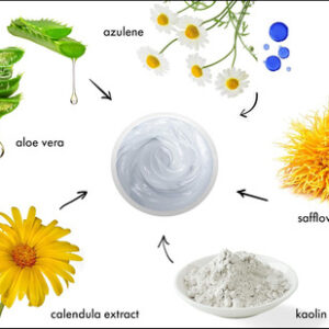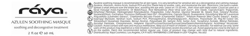 Azulen Máscara Calmante é recomendada para todos os tipos de pele. É muito benéfico para peles sensíveis como máscara descongestionante e calmante. Extratos de flores de São João, flores de arnica e flores de calêndula ajudam a refinar, tonificar, firmar e proteger o equilíbrio de hidratação da pele. O PCA de sódio fornece atividade de ligação à umidade. Gel Azuleno, Alantoína e Aloe Vera possuem propriedades calmantes e curativas. Glicerina, óleo de cártamo e esqualeno protegem a pele da perda de umidade. A argila de caulim moída finamente e o óxido de zinco ajudam a absorver suavemente a oleosidade da superfície da pele e a refinar os poros. O bisabolol e o d-Pantenol apresentam propriedades renovadoras da pele e ajudam a acalmar a inflamação. Azulen Soothing Masque ajuda a melhorar a elasticidade, elasticidade, tom, firmeza e hidratação da pele e tem uma consistência leve e cremosa. Sua cor azul claro vem do Azulene. Máscara Calmante Azulen (602) | RAYA