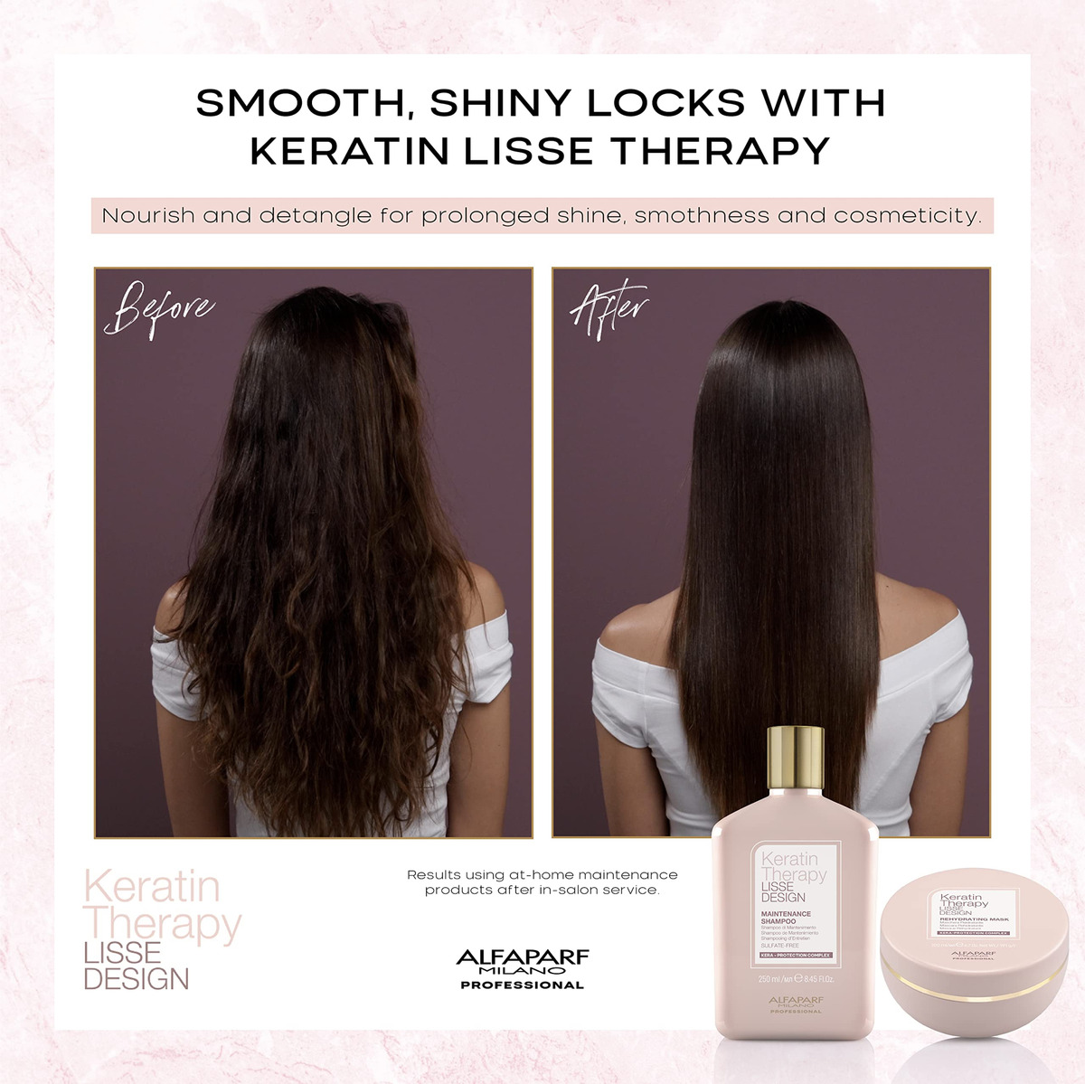 Máscara capilar rehidratante Alfaparf Milano Lisse Design Keratin Therapy – Máscara capilar condicionadora profunda após o tratamento com queratina para controle do frizz e retenção de umidade – Tratamento para cabelos secos (6,7 onças) – Protege, repara danos, fortalece e suaviza. Sem óleo mineral e parafina. Suaviza, doma e define o cabelo.