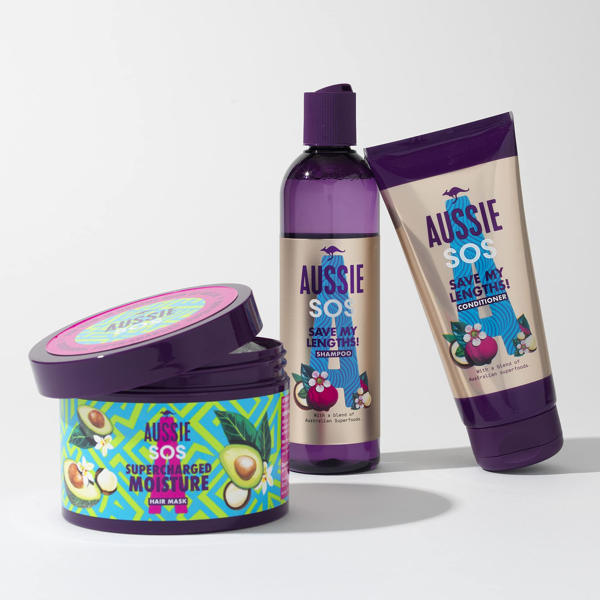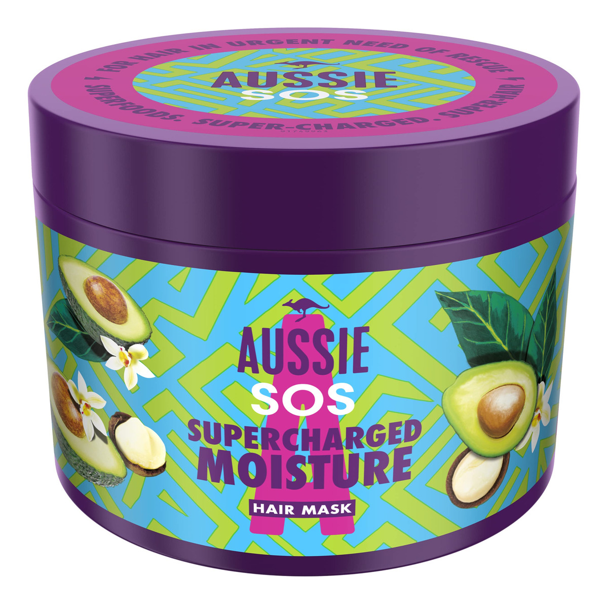 Máscara capilar Aussie SOS, hidratante sobrecarregada, com óleo de semente de jojoba australiano, vegana, para cabelos que precisam ser resgatados com urgência, com superalimentos australianos, 450 ml – Máscara capilar Aussie SOS Supercharged Moisture com ingredientes botânicos australianos autênticos – Para cabelos danificados que precisam ser resgatados com urgência – Reciclável (dependendo das instalações de reciclagem) – Aussie é reconhecida como livre de crueldade pela PETA – SuperFoods. Sobrecarregado. Supercabelo