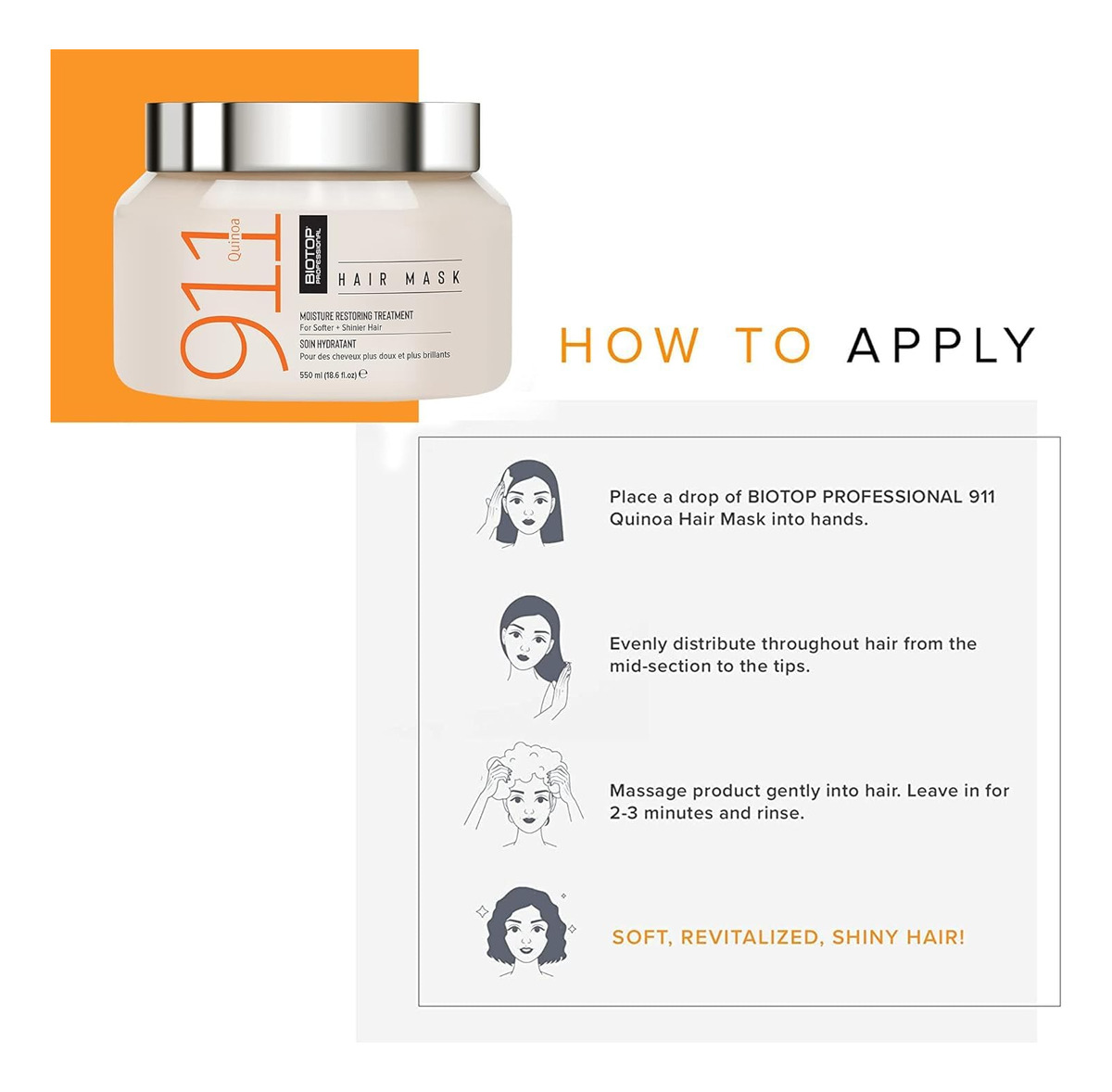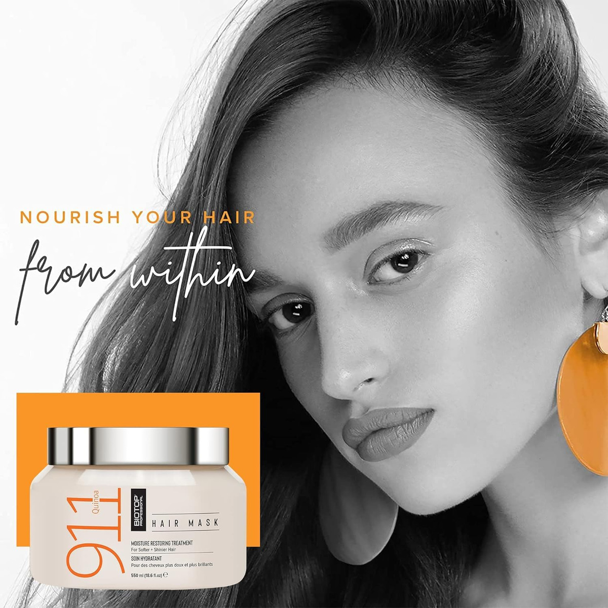 Descubra a verdadeira alegria de um cabelo macio, forte e intensamente revitalizado. Enriquecida com proteínas restauradoras derivadas do extrato nutritivo de quinoa, esta máscara indulgente confere ao cabelo hidratação essencial para uma elasticidade e suavidade renovadas. Combinando os ingredientes ativos do extrato de quinoa, óleo de rícino, óleo de semente de girassol e vitamina E, esta máscara capilar para cabelos secos e danificados e o crescimento acelera a reparação do cabelo, oferece benefícios nutritivos e hidratantes profundos. Esta máscara capilar de hidratação profunda também ajuda a reparar pontas duplas. Deixando o cabelo macio e elegante. Esta máscara capilar é adequada para todos os tipos de cabelo, incluindo cabelos finos, crespos ou tratados com cores. Basta uma dose do nosso tratamento para cabelos secos para manter os cabelos secos adequadamente nutridos e hidratados. Combinando os ingredientes ativos de quinoa, óleo de rícino e óleo de semente de girassol, nossa máscara capilar para cabelos secos atua revitalizando as madeixas. A BioTop Professional é uma empresa familiar que está comprometida em trabalhar como sua parceira de salão de beleza e em levar aos consumidores cuidados capilares de nível profissional para mulheres que elas possam acessar em casa. Os produtos da BioTop variam de produtos anti-frizz para cabelos, máscaras de tratamento capilar, máscaras para cabelos noturnos ou produtos capilares para cabelos crespos. Descubra a linha completa da BioTop Professional em sua loja Amazon. – Repara cabelos danificados quimicamente e ambientalmente A exposição a produtos químicos e elementos agressivos pode fazer com que seu cabelo precise de uma hidratação intensa. Proteja-o e fortaleça-o com nossa máscara capilar de quinoa, que é enriquecida com proteína de quinoa – o hidratante perfeito para cabelos. – Suporta cabelos mais fortes e elásticos Dê ao seu cabelo o tratamento rico em proteínas de que ele precisa com nossa máscara capilar. Ideal para cabelos tratados em salão de beleza, este tratamento capilar é profundamente hidratante e nutritivo. Ajuda a reparar danos e melhorar a textura geral do cabelo para combater o crespo e deixá-lo liso e macio. – Revitaliza, nutre e hidrata Um pouco de nossa máscara capilar para cabelos danificados é suficiente para manter o cabelo seco adequadamente nutrido e hidratado. Combinando os ingredientes ativos de quinoa, óleo de rícino e óleo de semente de girassol, nosso tratamento de máscara capilar revitaliza as madeixas. – Como usar – Aplique nossa máscara de condicionamento profundo em cabelos limpos e úmidos da seção média até as pontas. Massageie o produto suavemente no cabelo, deixe por 2-3 minutos, enxágue bem. Para um tratamento intenso de reparação capilar, deixe a máscara agir durante a noite. – Sem parabenos, cloreto de sódio ou SLS/SLES Nossos produtos de cuidado capilar 911 Quinoa são formulados para fornecer reparação profunda para cabelos secos e danificados. Nossos produtos são feitos com ingredientes ativos, sempre têm pH balanceado para cabelos e couro cabeludo, alimentados pelo superalimento quinoa, queratina, óleo de argan e muito mais.