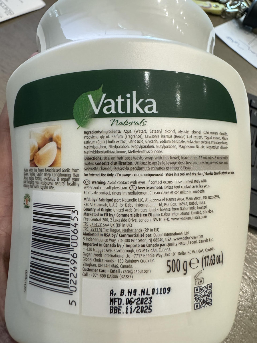 Creme condicionador de máscara capilar de alho Dabur Vatika Naturals, 500 gramas – Creme de tratamento para máscara capilar de alho Dabur Vatika Naturals – Foi formulado cientificamente – Peso líquido: 500 gramas