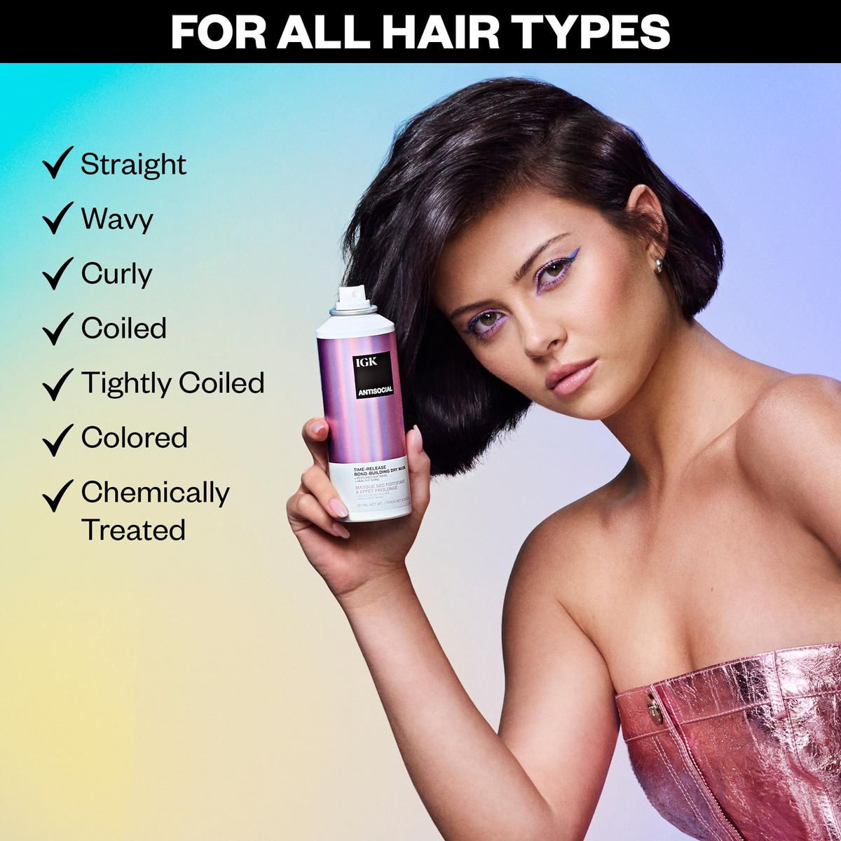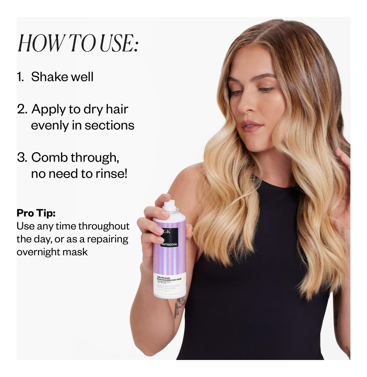 IGK Antisocial Overnight Bond-Building Dry Hair Mask Travel – Uma máscara de tratamento a seco de liberação prolongada que usa tecnologia leave-in, de construção de laços e extrato de seda vegano para reparar e amaciar o cabelo. – Uso sugerido: -Agite bem. -Aplique nos cabelos secos em mechas. – Penteie. -Não há necessidade de lavar ou reestilizar. -Melhor usado durante a noite. – A primeira tecnologia leave-in de construção de laços repara e protege o cabelo de dentro para fora. Ele liga às proteínas naturais do cabelo dentro da fibra capilar, ajudando a fortalecê-la por dentro. Em seguida, forma uma rede condicionadora de aminoácidos na parte superior do cabelo para alisar a cutícula, dar brilho e evitar danos futuros causados por secadores e escovação. Proteínas inovadoras de seda vegana são derivadas de plantas, em vez de bichos-da-seda, para proporcionar o mesmo desembaraçamento e suavização.