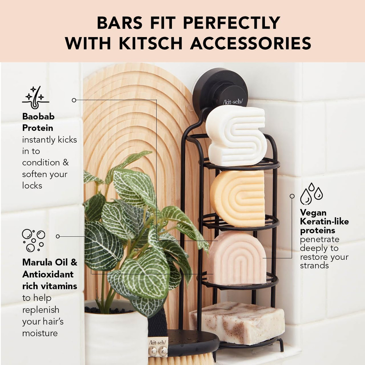 “Apresentamos nosso tratamento de reparo de laços fortalecedores, uma maravilha do cuidado do cabelo projetada para transformar suas madeixas e elevar sua rotina de autocuidado. Diga adeus aos cabelos secos e danificados e olá aos cabelos deliciosos cheios de vitalidade e força! Infundido com uma mistura poderosa de proteína vegana semelhante à queratina, este tratamento semanal faz maravilhas ao selar a cutícula do cabelo, reparar facilmente os sinais de danos e restaurar a resiliência natural do cabelo. Experimente a magia do óleo de Marula e das vitaminas ricas em antioxidantes enquanto nutrem profundamente o cabelo, retendo a umidade essencial para um acabamento aveludado, macio e radiante. Perfeita para todos os tipos de cabelo, nossa inovadora proteína Baobab garante que seus fios sejam condicionados instantaneamente, deixando você com um cabelo macio como seda. E não é só isso que nosso compromisso com o meio ambiente se reflete em todos os aspectos do nosso produto. Livre de parabenos, ftalatos, sulfatos e fragrâncias artificiais, é um verdadeiro testemunho da beleza ecológica. Feito com amor nos EUA, nosso tratamento de reparo de laços fortalecedores é tão fácil de usar quanto eficaz. Basta trocar seu condicionador normal uma vez por semana e mimar seu cabelo com este tratamento luxuoso. “Pinte-o” ou distribua-o entre as mãos, deixe as potentes proteínas e vitaminas veganas penetrarem em seu cabelo por pelo menos 10 minutos, depois enxágue e testemunhe a transformação. Eleve seu estilo de cuidar do cabelo e adote uma rotina de beleza sustentável com nosso tratamento de reparo de laços fortalecedores. Liberte todo o potencial do seu cabelo e, ao mesmo tempo, tenha um impacto positivo no planeta. É uma situação ganha-ganha para você e para o meio ambiente. Experimente hoje e descubra o segredo de um cabelo digno de um salão de beleza, diretamente do conforto da sua casa.” – MÁSCARA CAPILAR RESTAURADORA BOND: repare e fortaleça os cabelos secos e danificados com nosso tratamento capilar semanal reparador. Formulado com proteína vegana semelhante à queratina, ele sela a cutícula do cabelo, reduzindo efetivamente os sinais de danos e aumentando a força do cabelo. – INFUSÃO DE HIDRATAÇÃO NUTRITIVA: experimente nutrição profunda e retenção de umidade essencial para o cabelo com o poder do óleo de Marula e vitaminas ricas em antioxidantes. Nossa máscara capilar reparadora de danos garante que seu cabelo permaneça macio, manejável e saudável, independentemente do tipo de cabelo. – MÁSCARA REPARADORA ECOLÓGICA: adote a sustentabilidade com nosso produto, que não só é livre de substâncias químicas nocivas, como parabenos, ftalatos, sulfatos e fragrâncias artificiais, mas também contribui para o meio ambiente ao reduzir o plástico descartável. Feita nos EUA, essa barra de tratamento é fácil de usar, basta “pintar” do meio às pontas, deixar agir por 10 minutos e enxaguar para cabelos desembaraçados e revitalizados. – INGREDIENTES NATURAIS: A Kitsch é conhecida por fazer as melhores barras de xampu e condicionador. Nós nos preocupamos profundamente com o que acontece em cada barra de xampu e usamos apenas ingredientes naturais à base de plantas, sem sulfatos, parabenos, fragrâncias artificiais ou corantes! Nossos produtos de beleza têm pH balanceado para que você possa se sentir bem com seu cabelo todos os dias. – LIVRE DE CRUELDADE. Somos certificados pelo Leaping Bunny! O logotipo Leaping Bunny é o único símbolo reconhecido internacionalmente que garante aos consumidores que nenhum novo teste em animais foi usado para desenvolver qualquer produto que o exiba.