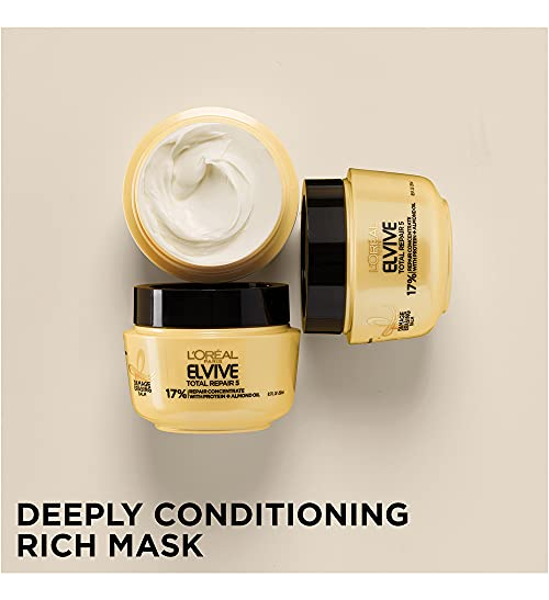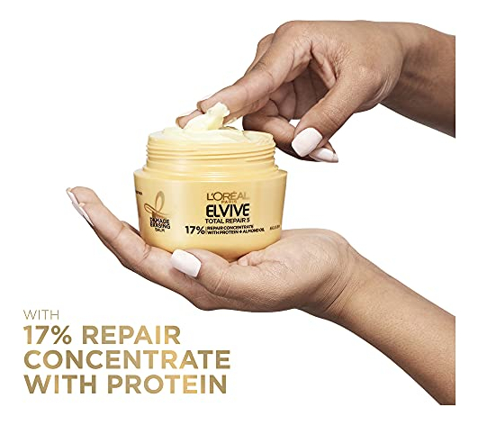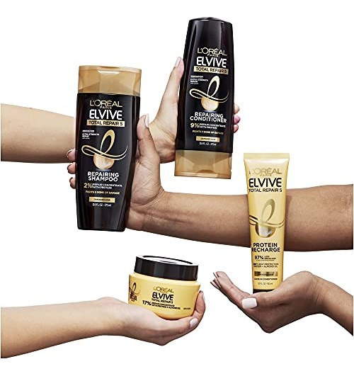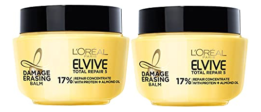 L'Oreal Paris Total Repair 5 Damage Erasing Balm é uma máscara de cabelo enxaguável que repara até um ano de danos à suavidade do cabelo em 1 uso. Poderoso e luxuoso, este tratamento capilar para cabelos danificados repara instantaneamente os 5 sinais de danos: pontas duplas, fraqueza, aspereza, opacidade e desidratação. Para melhores resultados, use com o shampoo Total Repair 5. Reverte os danos à suavidade do cabelo com o uso diário, ao usar o sistema de shampoo e bálsamo Total Repair 5. Ao usar o sistema completo de xampu, condicionador e tratamento. A embalagem pode variar, o que você recebe pode não ser o que está refletido no local.