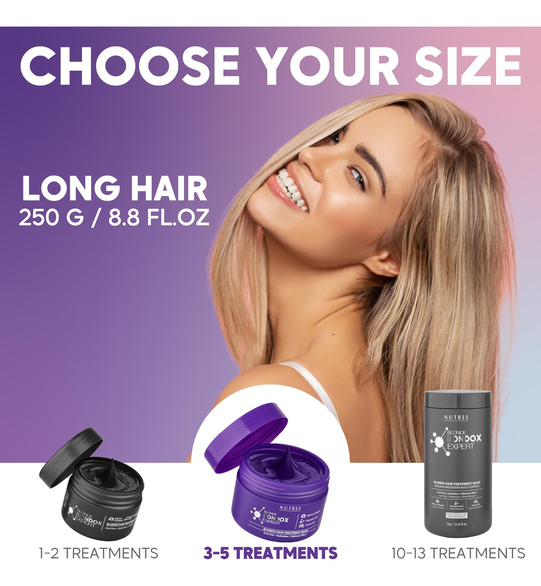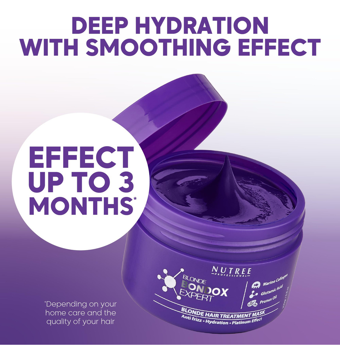 MÁSCARA DE TRATAMENTO CAPILAR BLONDE BONDOX de efeito longo 8 semanas Com uma fórmula tecnológica exclusiva que combina ácido glutâmico com o poder do óleo de amêndoa, a máscara térmica de queratina Brazilian BLONDE BONDOX HAIR foi desenvolvida para recuperar os cabelos extremamente danificados pelas agressões diárias, promovendo hidratação profunda e efeito suavizante, mantendo os cabelos alinhados, nutridos, fortes, saudáveis e sem frizz. Benefícios Recupere o cabelo extremamente danificado pelas agressões diárias Promover a ação Efeito hidratante e suavizante Mantendo o cabelo alinhado, nutrido, forte, saudável e sem frizz por até 8 semanas Resultados Efeito suavizante por até 8 semanas Hidratação profunda da cor e mechas radiantes Proteção Reconstrução da fibra capilar Volume reduzido Sistema anti-umidade por até 8 semanas Brilho, maciez e disciplina nos fios Cuidados Antes de aplicar qualquer produto, sempre conduza um fio teste e teste cutâneo Não é adequado para mulheres grávidas, bebês e crianças Em caso de contato com os olhos, enxágue com água em abundância – A MÁSCARA ROXA BLONDE BONDOX PARA CABELOS LOIROS PROPORCIONARÁ RESULTADOS INCRÍVEIS APÓS O PRIMEIRO USO. É o produto de tratamento mais procurado para cabelos. Promove uma reconstrução perfeita, rejuvenescimento celular e restauração profunda em vários níveis. A máscara combina um trio poderoso, uma rica composição de trabalho, um mecanismo de ação claro e simples e um resultado garantido. Contribui para a reabilitação completa do cabelo por dentro e por fora, independentemente do estado anterior da estrutura. – É O CAMINHO MAIS CURTO PARA RECUPERAR CABELOS BONDOX LOIROS OPACOS, FRACOS, ESGOTADOS E SECOS. Ele direciona forças para dentro do cabelo e dá um efeito visual maravilhoso. As loiras enfrentam problemas de cabelo com mais frequência, pois o cabelo é exposto a influências agressivas e é especialmente vulnerável a danos. A coloração frequente quebra a integridade das ligações de dissulfeto e promove a eliminação da elastina e do colágeno naturais. A máscara intensiva e profundamente hidratante dá vitalidade às suas madeixas em apenas uma aplicação. – É UMA ÓTIMA SOLUÇÃO PARA LOIRAS SE LIVRAREM DO TOM AMARELO. A máscara BLONDE BONDOX é uma ótima solução nesse caso, pois contém pigmento roxo para tonificar e neutralizar os tons amarelos. BLONDE BONDOX oferece um brilho brilhante deslumbrante e um tom de platina suave e exclusivo. Os fios ficam espessos e alisados, fluidos e saudáveis, hidratados e sedosos, macios e agradáveis ao toque. Dê ao seu cabelo o luxo de hidratar profundamente, suavizar, revitalizar e melhorar a cor. – EXPERIMENTE TODOS OS BENEFÍCIOS DO BONDOX E DESFRUTE DE RESULTADOS DURADOUROS. Essa máscara cria o efeito mágico da transformação. Para loiras, o BLONDE BONDOX é um tratamento revitalizante muito importante, como uma salvação. Isso o ajudará a melhorar drasticamente a saúde de suas madeixas, afetando seu sistema radicular. Isso torna seu cabelo realmente saudável e bem cuidado, parecendo mais denso, volumoso, liso e macio, como seda com um brilho luxuoso. A composição das máscaras dará uma nova vida ao seu cabelo. – O ÓLEO DE KARITÉ, conhecido como o óleo da vida, é conhecido por seu poder rejuvenescedor. O óleo de karité envolve o cabelo e cria uma combinação perfeita de suavidade agradável, máxima elasticidade e brilho natural. O alto teor de vitaminas A, E e D nutre e hidrata os cabelos secos, elimina a quebra e rachaduras dos cabelos e fortalece os fios. Como resultado, os fios ficam lisos e brilhantes. O produto atua em cada fio de cabelo, promovendo sua restauração e resistência.