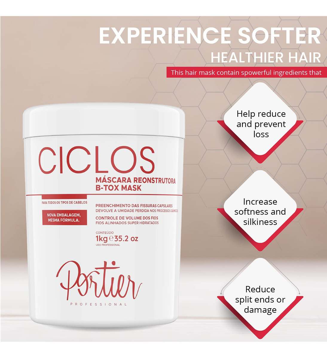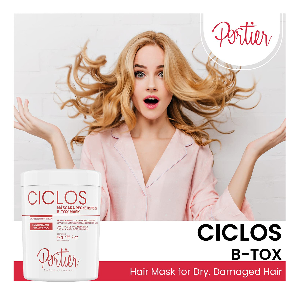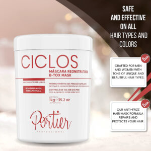 Melhore o controle reduzindo o volume com uma máscara B-Tox restauradora de cabelo que hidrata, hidrata e protege o cabelo enquanto aumenta a maciez e o brilho. Cabelos secos e danificados podem causar pontas duplas, quebras e frizz intenso. Sem reidratar adequadamente o cabelo e mantê-lo hidratado, pode significar embotamento, cor ruim e até perda. É por isso que queremos proteger seu cabelo com esta avançada máscara Portier Ciclos B-Tox que nutre e hidrata todos os fios. Tudo isso mantendo uma cor bonita e melhorando a capacidade de gerenciamento, para que você possa capturar a aparência perfeita. Reconstrua a força e a vibração do cabelo da raiz às pontas Os ingredientes naturais em nossa fórmula de tratamento capilar foram projetados para ajudar a suavizar o efeito dos alinhamentos térmicos, especificamente colorindo e tratando termicamente os cabelos, mantendo a umidade. Na verdade, isso pode reduzir o frizz e ajudar a controlar os cachos com um efeito suave que reduz o volume e aumenta a vibração geral, o brilho e a maciez sedosa. Detalhes do produto: A máscara capilar B-Tox com reconstrução capilar O condicionamento profundo e a hidratação intensa ajudam a reduzir e prevenir a perda Melhora o brilho, a maciez e a vibração Reduz o volume e o controle aprimorado Ajuda a reparar cabelos secos e danificados Sem formaldeído ou aditivos agressivos Segura e eficaz em todos os tipos e cores de cabelo Volume do frasco: 35,2 fl. oz./1 kg Restaura o brilho e a maciez dos cabelos, melhorando a força com uma máscara capilar B-Tox que reduz o volume e a maciez dos cabelos retém a umidade por até 60 dias. Adquira Portier Ciclos hoje clicando em Adicionar ao carrinho agora. – Experimente cabelos mais macios e saudáveis A máscara capilar Portier Ciclos B-Tox contém ingredientes poderosos que ajudam a nutrir o cabelo com hidratação intensa, que pode ajudar a prevenir a queda de cabelo, aumentar a maciez e a sedosidade e reduzir pontas duplas ou danos. – Brilho e vibração de longa duração Muito além de uma máscara de cabelo encaracolado padrão, esta máscara capilar para cabelos tingidos, secos e danificados oferece de 45 a 60 dias de consistência suporte para mantê-lo incrivelmente radiante mesmo após os dias de praia no verão. – Reduz o volume e promove O controle de brilho é essencial se você está tentando criar o estilo certo para combinar com sua aparência, e é por isso que essa máscara hidratante natural reduz o crespo e o volume para aumentar a capacidade de gerenciamento. – Suporte capilar puro e versátil. – Criado para homens e mulheres com muitos tipos, cores e estilos de cabelo exclusivos e bonitos, nossa fórmula de máscara antifrizz repara e protege seu cabelo com suporte avançado que é vital para uma vibração a longo prazo. – Sem parabenos, somente pureza Como nossos outros produtos para o cuidado do cabelo, esta máscara capilar de hidratação profunda não contém parabenos, formaldeído ou outros ingredientes para o cabelo, o que significa que eles não irritam o couro cabeludo nem ressecam o cabelo, proporcionando um suporte limpo e confiável.