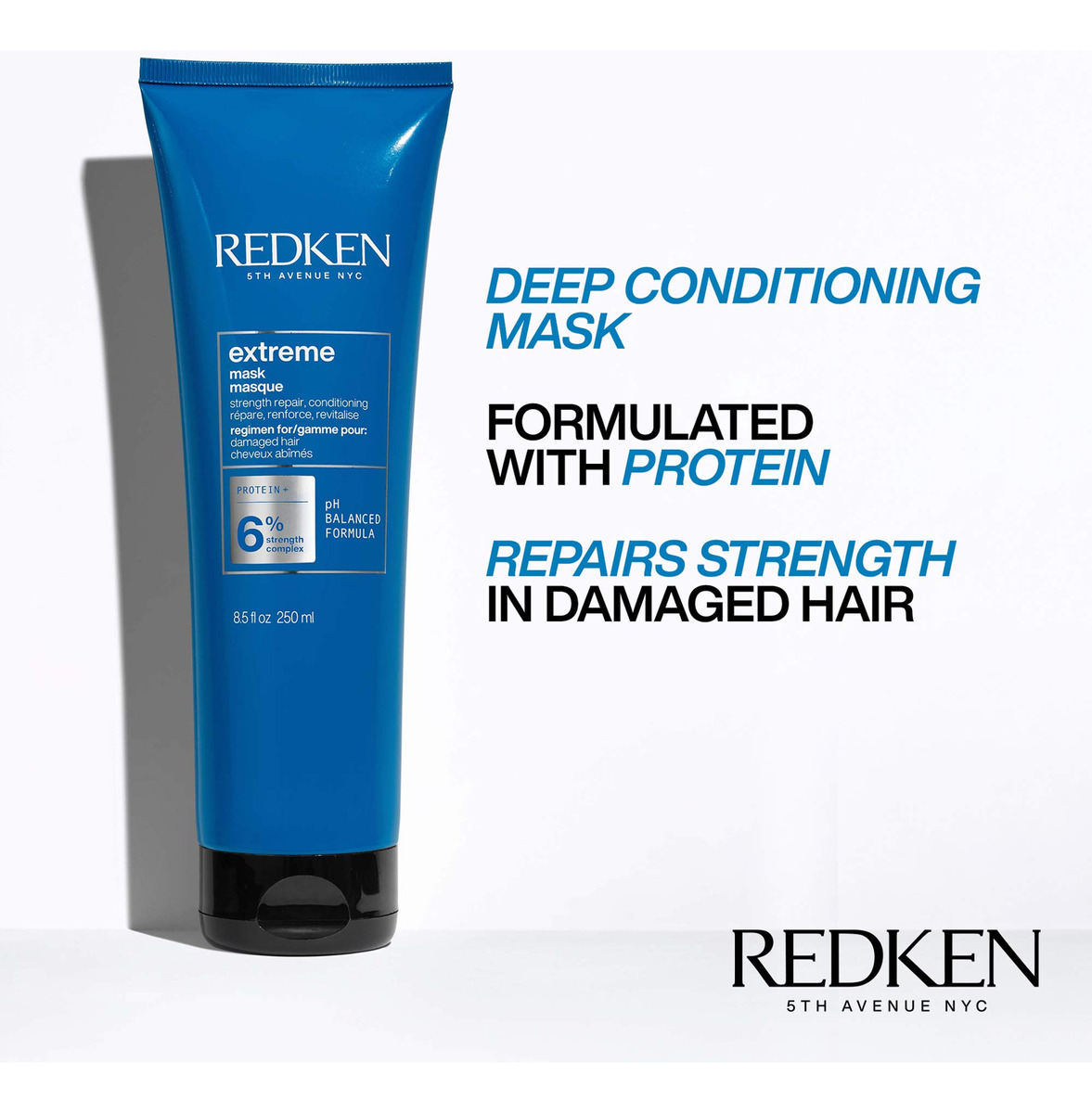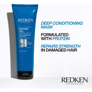 Máscara Redken Extreme | Máscara capilar para cabelos danificados e quebradiços | Fortifica e fortalece cabelos desgastados | 8,5 fl. Oz. (pacote com 1) — A máscara Redken Extreme suaviza suavemente a cutícula do cabelo para ajudar a evitar a quebra do cabelo e fortalecer os cabelos danificados. Formulado com o Complexo de Força da Redken para atuar como um condicionador suavizante profundo. – Deixa o cabelo saudável, brilhante e resistente. Reduz o atrito causado pela escovação e evita maiores danos. Contém aminoácidos e arginina para fortalecer e fortalecer o cabelo e ácido cítrico para equilibrar o pH. – A máscara de condicionamento profundo fortificante para cabelos secos e danificados trata a raiz, o núcleo e a ponta do cabelo. A máscara Extreme é formulada com o Complexo de Força da Redken para gerenciar e tratar cabelos danificados. – Fortalece os cabelos danificados, deixando-os saudáveis, macios e resilientes. Hidrata, fortalece e restaura os cabelos danificados. Evita futuras quebras do cabelo e reduz as pontas duplas. – O condicionador é formulado com o Complexo de Força da Redken, que contém proteína de soja, aminoácidos e arginina para fortalecer e fortalecer o cabelo e ácido cítrico para condicionar e adicionar suavidade. Gerencia e trata o ressecamento e os cabelos danificados.