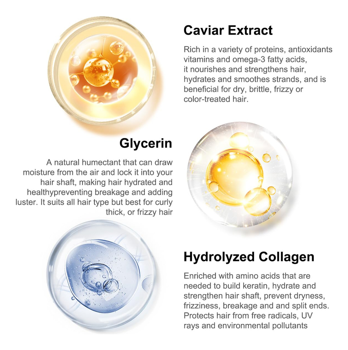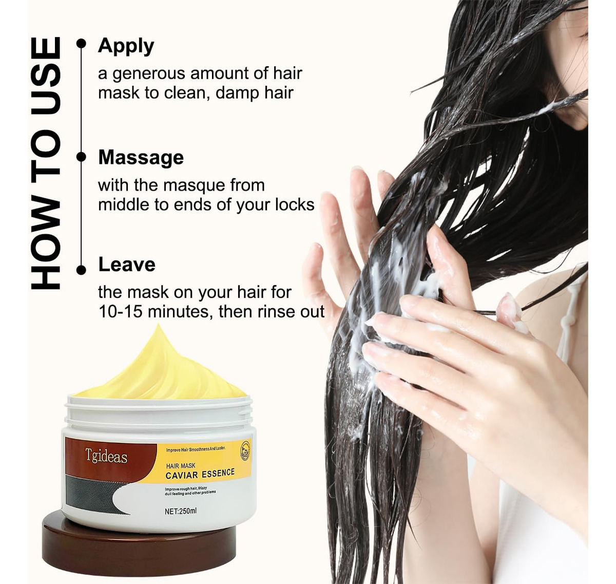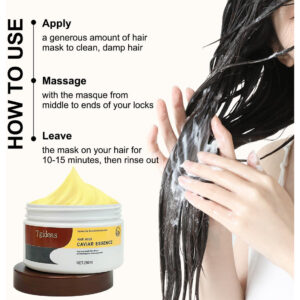 Stronger, healthier, shinier hair in four easy steps with our Deep Conditioning Hair Mask. Designed to repair and nourish dry, damaged hair, it revitalizes damaged, fragile hair by adding elasticity, luster, softness and moisturization. Start by removing the hair mask into the palm of your hand. Then, apply the hair treatment mask from the root to the ends of the hair, massaging and combing through the hair with your fingers or a comb. Next, let the deep conditioner sit on your hair for 5 to 10 minutes and finally rinse it out. – TIRED OF TIRED-LOOKING HAIR? – Revive your dry, damaged, dull, or frizzy hair with this fabulous hair mask. Experience the impressive results of deep hydration, nourishment, and strength, leaving your hair irresistibly soft, shiny, silky, bouncy, and easy to manage. Take control and feel confident in your beautiful, healthy tresses! – BRING YOUR HAIR BACK TO LIFE! – Our deep conditioning hair mask repairs and restores damaged hair caused by color treatment, bleaching, and over-processing. It replenishes essential nutrients, mends breakage, reduces split ends, improves texture, elasticity and shine. Works miracles on every hair type (straight, wavy, curly) or texture (fine, medium, thick) – hair extensions included! Try it now and experience the transformation yourself! – ELEVATE YOUR HAIR CARE ROUTINE TO THE NEXT LEVEL! – Our hair mask treatment contains a unique formula that includes Caviar Extract – a natural source of antioxidants that can repair and strengthen fragile and damaged hair while boosting elasticity for soft and shiny locks. Hydrolyzed collagen prevents breakage and reduces split ends, while glycerin replenishes and moisturizes dry and frizzy hair. – STUNNING SOFT SHINY SILKY HAIR IN MINUTES! – Be it a deep conditioning treatment once or twice a week (for normal hair), or a bi-weekly intense haircare routine (for fine hair), this hair repair mask is the easy go-to product. Apply it evenly to damp or wet hair, wait 5 to 10 minutes, then rinse thoroughly. Take your hair health to the next level with deep nourishment thats practically from down under! – TIME TO SHOW THIS LIFE-SAVER HAIR MASQUE SOME DEEP LOVE! – Our hair masks are free of GMO, gluten, phthalates, sulfates, and cruelty-free. Start now and enjoy the luxurious salon treatment in the comfort of your home!