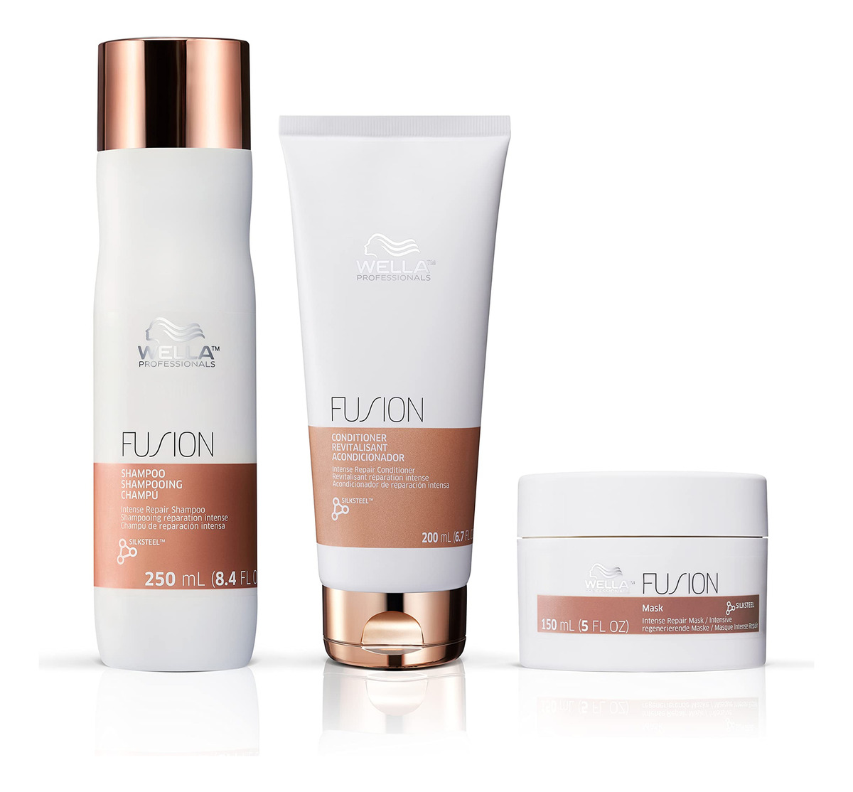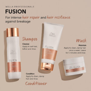 Máscara capilar Wella Professionals Fusion Intense Repair para cabelos danificados, tratamento de máscara para reparação capilar, tratamento para quebra de cabelo, 16,9 fl oz – Oferece a melhor proteção ao cabelo contra quebras com a máscara Wella Professionals Fusion Intense Repair – Oferece até 95% mais resiliência contra quebras.* – Com aço de seda, a fusão de aminoácidos da seda e lipídios micronizados – Ajuda a proteger o cabelo contra quebras e danos mecânicos – Recupera instantaneamente a fibra capilar em micro e níveis macro