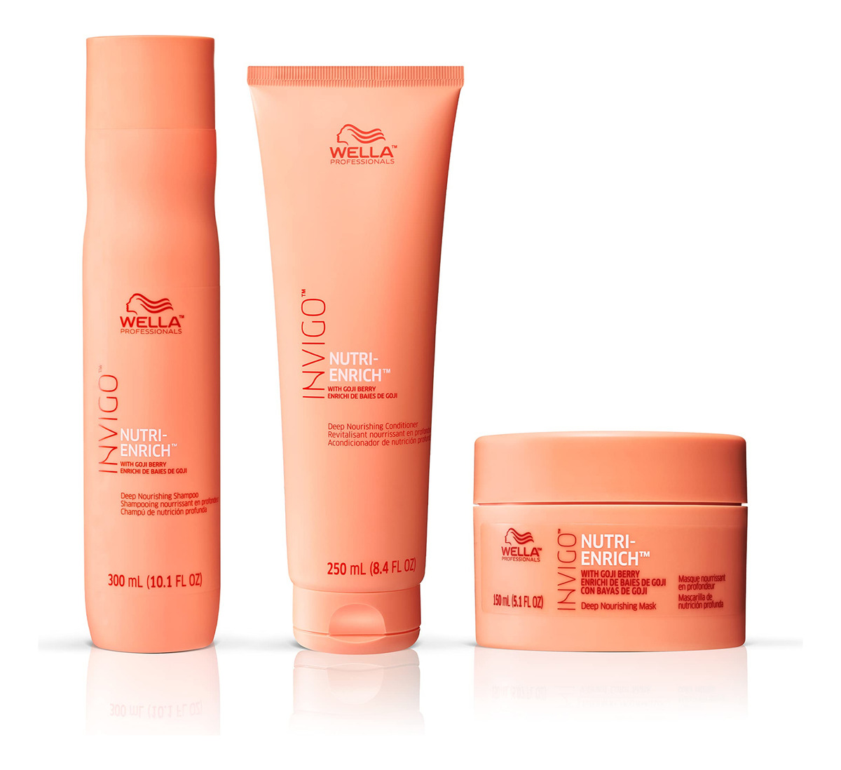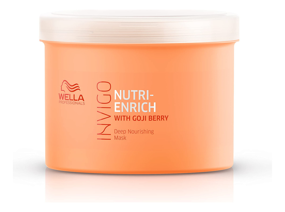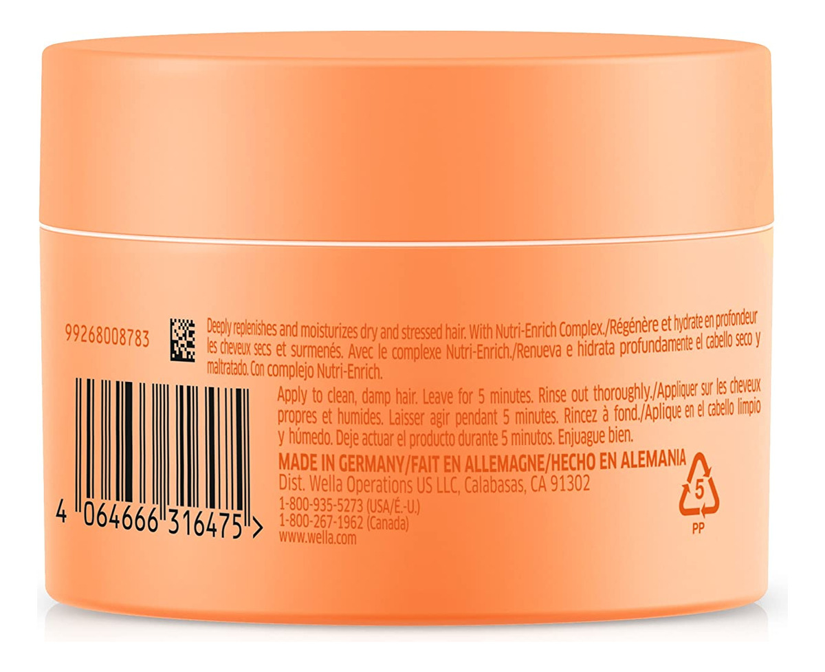 Máscara Wella Professionals Invigo Nutri-Enrich, máscara de cabelo profundamente nutritiva e hidratante para cabelos secos e danificados, 16,9 fl oz — Máscara nutritiva profunda especialmente desenvolvida para cabelos secos ou desgastados — Formulada com Nutri-Enrich-Blend, uma mistura única de extratos e vitaminas para ajudar a deixar o cabelo hidratado e cheio de vitalidade — Contém ácido oleico e pantenol, que fornecem hidratação e nutrição Manteiga para cabelos, enquanto a vitamina E protege os cabelos de mais estresse (Complexo Nutri-Enrich) — Projetado especialmente para cabelos secos ou desgastados — Proporciona um efeito instantâneo nutrição e garante cabelos lisos e cheios de vitalidade