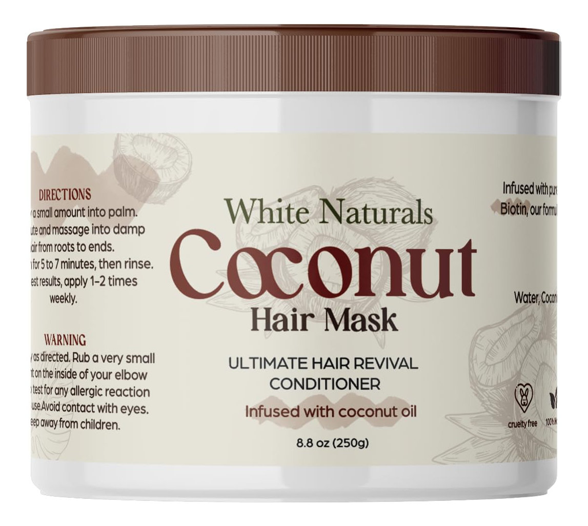 Solução All in One Hair Nutre e suavize seu cabelo com uma máscara de coco natural com óleo de coco, óleo de manteiga de karité e óleo de argan para ajudar a fortalecer os fios de cabelo, evitar quebras e reduzir pontas duplas. A mistura ajuda a aumentar o brilho e a força do cabelo, além de nutrir o couro cabeludo para um crescimento saudável dos cabelos. Você pode usá-lo em diferentes tipos de cabelo para hidratar profundamente, desembaraçar e reduzir o frizz. Resultados incríveis As máscaras capilares penetram profundamente no cabelo e agem rapidamente para desembaraçar, hidratar e embaçar e secar o cabelo, melhorando sua maleabilidade. Isso facilita o penteado de cabelos quebradiços que, de outra forma, seriam difíceis, com resultados rápidos. Esta máscara ajuda você a obter cabelos lisos e sedosos. Ele vai além de alterar a aparência do cabelo e se aprofunda para melhorar drasticamente sua saúde, reparando os cabelos danificados pelo penteado, pelo calor, pelo descoloramento e pelo excesso de coloração. Ótimo para hidratar Este poderoso hidratante remove todo o excesso de oleosidade e sujeira do cabelo para obter aquele lindo cabelo brilhante. Esta máscara capilar deixará você sem graxa e sem resíduos. Usar esse hidratante com frequência pode ajudar a reduzir os efeitos dos produtos químicos capilares, pois a máscara capilar é 100% natural e não contém parabenos, produtos químicos agressivos ou ingredientes alérgicos. – NUTRE O COURO CABELUDO E SUAVIZA O CABELO: A máscara de coco White Naturals é alimentada por uma série de óleos, como óleo de coco, óleo de manteiga de karité, óleo de argan e o famoso óleo de coco para promover o crescimento saudável do cabelo, fortalecer os fios e condicionar profundamente os fios. o cabelo. Os ingredientes naturais nutrem o couro cabeludo e criam um ambiente saudável para um crescimento ideal do cabelo – PARA TODOS OS TIPOS DE CABELO: Nossa máscara de cabelo de coco foi criada com alguns dos mais excelentes produtos de nutrição capilar, projetados para funcionar em todos os tipos de cabelo. Além disso, o condicionador hidratante profundo para cabelos naturais contém vitaminas que promovem o crescimento e a força ideais para cabelos ondulados, encaracolados, enrolados e crespos, do normal ao seco, e texturas tratadas com cores para revitalizar o brilho natural do cabelo. – PROMOVA O DESEMBARAÇAMENTO: Esta máscara de hidratação profunda contém óleos que proporcionam umidade, maciez, brilho e proteção. Os óleos ajudam a desembaraçar o cabelo, para que você possa pentear com facilidade usando um pente de dentes largos da raiz às pontas. O óleo de coco com manteiga de karité ajuda a promover o crescimento do cabelo, prevenir o envelhecimento e reparar pontas duplas, tornando-o um creme de cabelo perfeito para mulheres e homens. – SEGURO PARA TODOS OS TIPOS DE PELE: Este tratamento hidratante contém as propriedades nutritivas dos óleos de coco, argan, manteiga de karité e abacate para fortalecer e suavizar o cabelo. Os óleos fortalecem e revitalizam o cabelo para reduzir as quebras e melhorar a elasticidade do cabelo para um cabelo liso, sedoso e brilhante. – FÁCIL DE APLICAR: aplique o tamanho da palma da mão da raiz às pontas e use um pente largo. Você também pode aplicar a máscara capilar em mechas grossas ao aplicá-la em cabelos finos. Deixe por 15 minutos e enxágue com água fria antes de secar o cabelo.