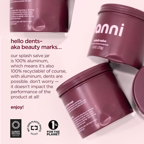 – SUSTENTABILIDADE: O HANNIs Splash Salve vem em um frasco de alumínio 100% reciclável, tornando-o o complemento ecológico perfeito para sua rotina de cuidados com a pele.