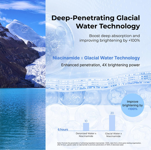 – Proteção antioxidante poderosa: a carnosina e a água glacial trabalham juntas para proteger a pele dos danos oxidativos, mantendo uma aparência clara e jovem.