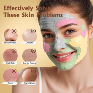 Como usar: 1. Limpe o rosto antes da aplicação. 2. Aplique uma camada uniforme da máscara escolhida. 3. Relaxe por 10 a 15 minutos até secar. 4. Enxágue com água morna e, em seguida, aplique hidratante. 5. Para obter melhores resultados, use 2 a 3 vezes por semana. O pacote inclui: 4 x 2,1 onças (60 ml)