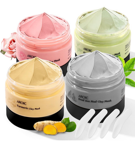 -Conjunto de presente de máscara de argila de 4 peças: cada máscara facial de argila de 60 ml é feita de ingredientes seguros, adequados para todos os tipos de pele. A máscara facial de açafrão com vitamina C, mar morto, chá verde e argila rosa é um presente perfeito para cuidar da pele no Dia das Mães, Natal e aniversário