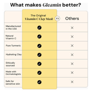 Máscara de argila com vitamina C Gleamin — 10 minutos para manchas escuras, máscara facial de açafrão para cuidados com a pele, limpeza profunda dos poros — O rosto melhora o tom irregular, pós-manchas, clareia visivelmente, deixa cicatrizes e textura — 2,5 onças — PELE RADIANTE E UNIFORME EM 10 MINUTOS: Em um estudo de percepção do consumidor, 100% dos participantes concordaram fortemente que a pele parecia mais radiante e saudável após 12 aplicações em 28 dias. Máscara facial para cuidados com a pele. Formulada com uma mistura botânica exclusiva de ameixa Kakadu rica em vitamina C, limão do deserto e nossa cúrcuma exclusiva, essa fórmula ilumina significativamente a pele e diminui a aparência de manchas escuras com o passar do tempo. – Corretor obstinado de marcas escuras direcionado: nossa fórmula testada e confiável, com mais de meio milhão de unidades vendidas, desbota efetivamente a aparência das descolorações, resultando em uma tez saudável e brilhante. – HYDROCLAY + CAULIM PARA ESFOLIAR E MINIMIZAR OS POROS: Esta dupla desintoxica suavemente a pele, removendo as impurezas e minimizando os poros sem remover o pele com umidade essencial. – Feita com dermatologistas, tratamento facial doméstico fácil e eficaz: projetada para ser conveniente, esta máscara elimina a necessidade de consultas caras com um esteticista, oferecendo resultados clínicos em casa com uma aplicação simples e sem bagunça de máscara facial, especialmente quando comprada com o pincel aplicador. – Segura para todos os tipos de pele: sua fórmula suave e sem manchas é adequada para todos os tipos de pele, incluindo peles sensíveis. A composição vegana e livre de crueldade da máscara garante uma rotina de cuidados com a pele sem culpa que não compromete a qualidade ou os resultados. – *NOTA IMPORTANTE: Durante o transporte, o produto pode se deslocar para dentro do frasco, criando a aparência de que foi “aberto”. Tenha certeza de que isso se deve apenas ao movimento da embalagem durante o envio. Todas as máscaras são enviadas novas, protegidas por um selo de segurança. – Somos a máscara original de argila com vitamina C, fabricada localmente nos Estados Unidos com ingredientes naturais locais e importados.