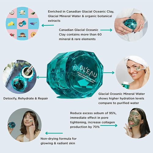 PRODUTO: Máscara de argila oceânica glacial Bleau – Certificada NSF – 50 g e Peso líquido. 1,8 onças