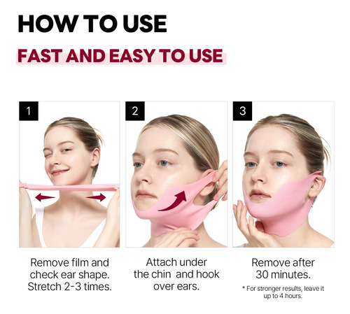 máscara de hidrogel firmadora em forma de V. – ESTIMULA E FIRMA A PELE FLÁCIDA Obtenha a linha V perfeita com uma máscara de tecido altamente elástica de alta qualidade.