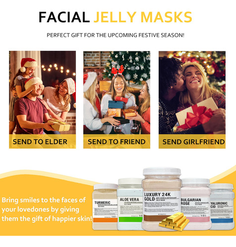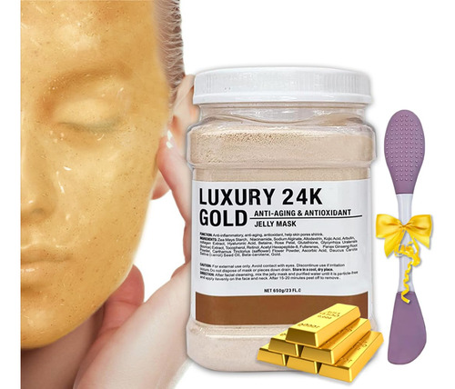 máscaras de gelatina para tratamentos faciais máscara facial de geléia de gel de ouro 24k máscaras de geleia em pó para rosto máscara de hidrogelatina máscara removível de borracha máscara de geleia nutritiva iluminadora Máscara facial descascável de ouro 24k máscaras de geleia para profissionais faciais – MÁSCARA FACIAL GELATINOSA EM PÓ – Nossa máscara de geleia de ouro 24k é embalada na forma de pó que assume a forma de geleia. Após a adição de água purificada, a máscara gelatinosa é feita principalmente com pó refinado alginato e amido de milho, pectina, hialuronato de sódio para proporcionar benefícios duradouros à pele – MELHORE A QUALIDADE DA PELE – O ácido hialurônico hidrata intensamente e revitaliza a pele. As propriedades antienvelhecimento da máscara facial gelatinosa ajudam na remoção de linhas finas, rugas e tons de pele irregulares. Estimula o colágeno e deixa a pele mais macia e volumosa – ESCOVA DE SILICONE DE PONTA DUPLA – Incluímos uma escova de silicone para melhores resultados. A cabeça da escova em forma de faca pode ser usada para ajudar a aplicar a máscara facial, a cabeça da escova com ponta de cola pode limpar profundamente o rosto – A máscara de borracha de golfe 24K é diferente da máscara de lama tradicional ou máscara de papel, dando à pele uma camada protetora fechada. A máscara facial em pó cria uma camada oclusiva, portanto hidrata profundamente e introduz profundamente todos os nutrientes benéficos na pele, o que aumenta a eficácia do Máscara de gelatina. Cada sessão deixará você com uma pele mais firme, úmida e mais jovem – COMO USAR – Recomendamos 4 colheres de pó com 3 colheres de água; ou 3 colheres de pó com 3 colheres de água. Basta aplicar a máscara facial de gelatina no rosto, esperar de 15 a 20 minutos e depois retirá-la suavemente e enxaguar o rosto. É muito fácil – NOTA: atualizamos a embalagem do produto. A embalagem do novo produto é ligeiramente diferente da embalagem antiga do produto, mas os ingredientes e efeitos são os mesmos, então sinta-se à vontade para usá-la