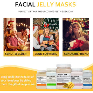 máscaras de gelatina para tratamentos faciais máscara facial de geléia de gel de ouro 24k máscaras de geleia em pó para rosto máscara de hidrogelatina máscara removível de borracha máscara de geleia nutritiva iluminadora Máscara facial descascável de ouro 24k máscaras de geleia para profissionais faciais – MÁSCARA FACIAL GELATINOSA EM PÓ – Nossa máscara de geleia de ouro 24k é embalada na forma de pó que assume a forma de geleia. Após a adição de água purificada, a máscara gelatinosa é feita principalmente com pó refinado alginato e amido de milho, pectina, hialuronato de sódio para proporcionar benefícios duradouros à pele – MELHORE A QUALIDADE DA PELE – O ácido hialurônico hidrata intensamente e revitaliza a pele. As propriedades antienvelhecimento da máscara facial gelatinosa ajudam na remoção de linhas finas, rugas e tons de pele irregulares. Estimula o colágeno e deixa a pele mais macia e volumosa – ESCOVA DE SILICONE DE PONTA DUPLA – Incluímos uma escova de silicone para melhores resultados. A cabeça da escova em forma de faca pode ser usada para ajudar a aplicar a máscara facial, a cabeça da escova com ponta de cola pode limpar profundamente o rosto – A máscara de borracha de golfe 24K é diferente da máscara de lama tradicional ou máscara de papel, dando à pele uma camada protetora fechada. A máscara facial em pó cria uma camada oclusiva, portanto hidrata profundamente e introduz profundamente todos os nutrientes benéficos na pele, o que aumenta a eficácia do Máscara de gelatina. Cada sessão deixará você com uma pele mais firme, úmida e mais jovem – COMO USAR – Recomendamos 4 colheres de pó com 3 colheres de água; ou 3 colheres de pó com 3 colheres de água. Basta aplicar a máscara facial de gelatina no rosto, esperar de 15 a 20 minutos e depois retirá-la suavemente e enxaguar o rosto. É muito fácil – NOTA: atualizamos a embalagem do produto. A embalagem do novo produto é ligeiramente diferente da embalagem antiga do produto, mas os ingredientes e efeitos são os mesmos, então sinta-se à vontade para usá-la