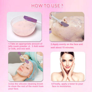 máscaras de gelatina para tratamentos faciais máscara facial de geleia profissional máscaras de borracha máscara facial em pó para cuidados com a pele máscara facial em pó máscara facial de gel de rosa Máscara facial de gel de rosa máscara facial de geleia de colágeno. – MÁSCARA FACIAL DE GELEIA EM PÓ – Nossa máscara de geleia de rosa é embalada na forma de pó que assume a forma de geleia após a adição de água purificada, máscara gelatinosa feita principalmente de alginatos naturais refinados e extratos de pétalas de rosa para fornecer benefícios duradouros para a pele – MELHORE A QUALIDADE DA SUA PELE – a máscara gelatinosa passa de uma mistura gelatinosa para uma máscara espessa semelhante a borracha que retém a umidade e infunde ingredientes nutritivos mais profundamente na pele. As propriedades antienvelhecimento da máscara facial gelatinosa ajudam na remoção de linhas finas, rugas e tons de pele irregulares. Cada sessão deixará você com uma pele mais firme, úmida e mais jovem – Pincel de silicone de ponta dupla gratuito – Incluímos um pincel de silicone gratuito para melhores resultados. A cabeça do pincel em forma de faca pode ser usada para ajudar a aplicar a máscara de gel rosa, a cabeça do pincel com ponta de cola pode limpar profundamente o rosto – Cubra o rosto – imagine estar coberta de geleia da testa até o queixo? Incluindo olhos e boca? Esta máscara de borracha pode ser aplicada nos olhos e na boca, a fórmula não escorre nem borra, cria uma vedação a vácuo na pele, retém a umidade e reduz a temperatura da pele – COMO USAR – Recomenda-se 4 colheres de pó com 3 colheres de água; ou 3 colheres de pó com 3 colheres de água. Basta aplicar a máscara no rosto, esperar de 15 a 20 minutos e depois retirá-la e enxaguar o rosto com cuidado. É muito fácil – NOTA: atualizamos a embalagem do produto. A embalagem do novo produto é ligeiramente diferente da embalagem antiga do produto, mas os ingredientes e efeitos são os mesmos, então sinta-se à vontade para usá-la