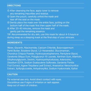 A máscara Bluelayer Water Dome retém a umidade sem ressecar, resolvendo o ressecamento interno. Ele contém ácido nano-hialurônico, que fornece umidade profunda à pele. Experimente hidratação e firmeza com esta máscara noturna. – [Efeito de hidratação profunda] Descubra os benefícios hidratantes da máscara Bluelayer Water Dome com ácido nano hialurônico. Esta máscara formulada cientificamente penetra profundamente na pele para fornecer hidratação intensa e melhorar a elasticidade da pele – [Ingredientes que minimizam os poros] Enriquecida com uma mistura de guaiazuleno e niacinamida, esta máscara de nível profissional oferece uma solução eficaz para minimizar os poros, garantindo resultados ideais. – [Máscara noturna] Deixe agir durante a noite para fornecer umidade contínua, dando adeus à secura para uma pele revigorada e rejuvenescida exion. – [Firmante e anti-rugas] Reduz as rugas e firma a pele. Nossa fórmula especializada contém ingredientes potentes que trabalham para fortalecer e firmar a pele, resultando em uma aparência mais jovem e rejuvenescida. – [Ácido Nano Hialurônico X Agave Azul] Aproveitando o poder do nano ácido hialurônico e da agave azul, esta fórmula oferece hidratação e nutrição incomparáveis, proporcionando umidade intensa e melhorando a textura da pele para uma experiência verdadeiramente revitalizada. – [Todos os tipos de pele] O A máscara Bluelayer Water Dome atende a todos os tipos de pele, garantindo acesso universal aos seus benefícios hidratantes.
