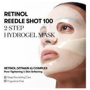 Máscara de hidrogel Reti-A Reedle Shot 100 de 2 etapas da VT COSMETICS, 4 unidades — Elasticidade aprimorada da pele: infundida com a essência de um sérum Reti-A inteiro, esta máscara de hidrogel oferece cuidados intensivos de elasticidade. – Complexo avançado de reti-A: uma mistura potente de retinoato de hidroxi pinacolona e bakuchiol cuidadosamente selecionados pela VT COSMETICS, um retinol derivado de plantas, ajuda a melhorar a elasticidade da pele e minimiza irritação. – Cuidados calmantes personalizáveis: escolha entre três opções calmantes com base no tempo de aplicação: Refrigeração e cuidados calmantes rápidos (30 a 40 minutos), cuidados calmantes intensivos (2 horas) ou cuidados noturnos (uso prolongado). — Ajuste perfeito para uma absorção ideal: a máscara adere firmemente à pele, garantindo a máxima absorção da essência enquanto você dorme.
