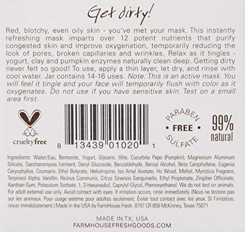 Suje-se! Pele vermelha, manchada e oleosa ‘ você conheceu sua máscara. Splendid Dirt® é um pote natural e rico em nutrientes de argilas ilita e bentonita, purê de abóbora orgânico cheio de enzimas frescas e culturas ativas de iogurte que aumenta instantaneamente o brilho geral ao limpar profundamente os poros, diminuindo temporariamente sua aparência e melhorando a aparência irregular. tons de pele. Este purê espesso misturado continua batido e aveludado, trazendo uma cara de abóbora laranja festiva que pode assustar os vizinhos, mas vai remover seriamente a gosma e ajudar a purificar até mesmo a pele mais congestionada. Você sentirá o Splendid Dirt® funcionando (e é viciante!) ‘ uma leve sensação de formigamento começa à medida que a oxigenação e a circulação aumentam. A sensação é temporária e, à medida que a máscara seca, a pele fica realmente acalmada e suavizada, diminuindo a aparência de manchas do dia a dia. Recomendado para todos os tipos de pele (EXCETO aquelas com pele sensível) para uso pelo menos uma vez por semana. ADORAMOS depois de usar o esmalte facial One Fine Day® Flawless!