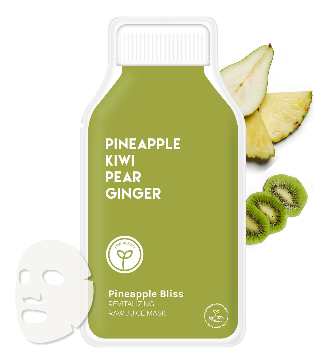 Máscara revitalizante de suco cru ESW Beauty Pineapple Bliss — SOBRE: Rejuvenesça a pele opaca e cansada e ilumine sua pele com esta máscara de lençol com infusão de abacaxi. Extratos de kiwi, gengibre e pera trabalham juntos para fornecer nutrição à pele e deixá-la macia e flexível. – Material da máscara de lençol: Cupra é um tecido sustentável feito de fibra de algodão, conhecido por sua textura macia e absorção de soro. O linter de algodão era anteriormente descartado como material residual durante o processamento do algodão. Agora, estamos reutilizando esse material biodegradável e vegano em nossas máscaras. – EMBALAGEM: Tanto a bolsa quanto a caixa de máscara de lençol se enquadram na categoria reciclável de LDPE 4. LDPE significa polietileno de baixa densidade, um plástico macio e flexível que não quebra facilmente e é resistente a produtos químicos externos ou umidade. O LDPE também pode ganhar uma segunda vida em itens como latas de lixo, caixas de compostagem, sacos de lixo, ladrilhos e muito mais! – LIVRE DE: parabenos, ftalatos, fragrâncias sintéticas, detergentes de formaldeído e sulfato – NOSSA FILOSOFIA: ingredientes limpos, veganos, livres de crueldade e sustentáveis