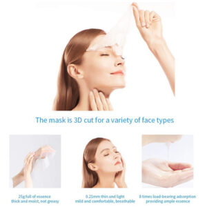 -Hidratante instantâneo e antioxidante- A máscara hidratante facial combina hidratantes naturais – essência de ácido hialurônico e alantoína, que aumentam a umidade da pele e reduzem as linhas finas e rugas, hidratando seu rosto para ficar mais suave, macio e elástico -Controle de óleo e desintoxicação- O hidratante facial máscara de lençol rica em extrato de hamamélis, que pode acalmar e limpar o excesso de oleosidade da pele, ajuda a aliviar a vermelhidão e a inflamação, evitando o aparecimento de acne. As propriedades cicatrizantes do extrato de Centella Asiatica promovem a produção de colágeno e previne o aparecimento de cicatrizes, reparam a barreira cutânea