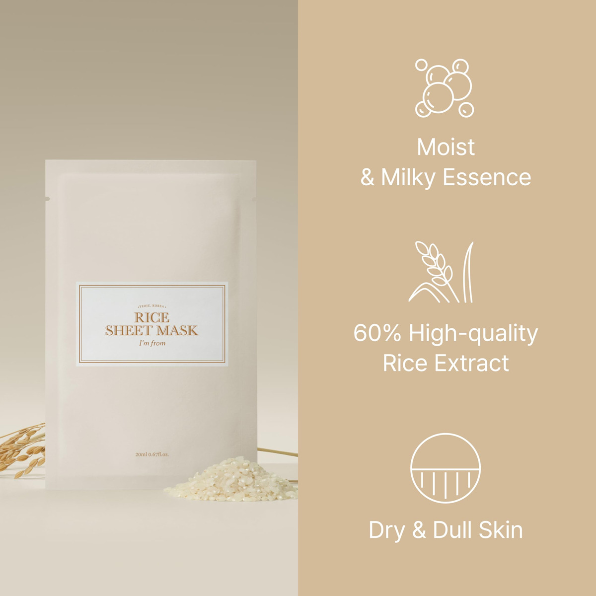I'm From Rice Sheet Mask é um produto para a pele da Coréia feito com 60% de extrato de arroz de alta qualidade. Ele é projetado para hidratar e hidratar a pele, deixando-a macia e cremosa. A máscara é feita de um material leve e confortável, embebido em uma essência leitosa, que contém mais do dobro da fibra alimentar em comparação com o arroz comum. Isso ajuda a nutrir a pele e promover uma aparência saudável. A máscara também é vegana e hipoalergênica, o que a torna adequada para todos os tipos de pele. É fácil de usar e pode ser aplicado por 15 a 20 minutos. Após a remoção, a pele ficará revigorada e hidratada, com um efeito brilhante. – HIDRATAÇÃO CREMOSA: mergulhe sua pele na essência leitosa de nossa máscara de lençol de arroz, criada especialmente para peles secas e mistas. Experimente o extrato de arroz coreano de 60% de alta qualidade, deixando sua pele hidratada e radiante. – MILKY ESSENCE MAGIC: hidrate sua pele com uma essência leitosa e cremosa. Nossa máscara de lençol está saturada com uma fórmula hidratante e hidratante que proporciona um ritual relaxante e nutritivo de autocuidado. – RITUAL DE PELE DE VIDRO: relaxe e mime sua pele com nossa máscara coreana de lençol de arroz. Enriquecido com niacinamida e adenosina, descubra o segredo para aumentar a hidratação suave e cremosa, promovendo um efeito de pele de vidro. A fórmula hipoalergênica e com certificação vegana EVE garante uma rotina de cuidados com a pele suave e eficaz. – ARROZ COREANO PREMIUM (Goami): usando a tecnologia de extração de água quente, nossa máscara facial de arroz contém mais do dobro da fibra dietética do arroz normal. Experimente o arroz premium coreano puro e natural, junto com ingredientes ativos como aminoácidos, gama orizanol e fibra dietética para uma pele suave e brilhante. – LEVE E CONFORTÁVEL: Delicie-se com o material leve e confortável de nossa máscara de lençol, projetada para aderir perfeitamente à pele. Deixe a essência láctea fazer sua mágica, deixando sua pele radiante, hidratada e pronta para mostrar seu brilho natural. – Material biodegradável certificado, livre de crueldade, adequado para veganos (até mesmo com certificação vegana), fórmula hipoalergênica testada para peles sensíveis, sem fragrâncias artificiais, sem óleos essenciais, sem silício e sem parabenos – AUMENTE O EFEITO DE BRILHO COM OUTRA LINHA DE ARROZ: eleve sua rotina de cuidados com a pele combinando nossa máscara de folha de arroz com outros itens essenciais da I'm From Rice, como toner de arroz, soro de arroz e creme de arroz. Experimente um impulso de hidratação sinérgico e obtenha uma pele radiante e brilhante com a linha completa Rice.