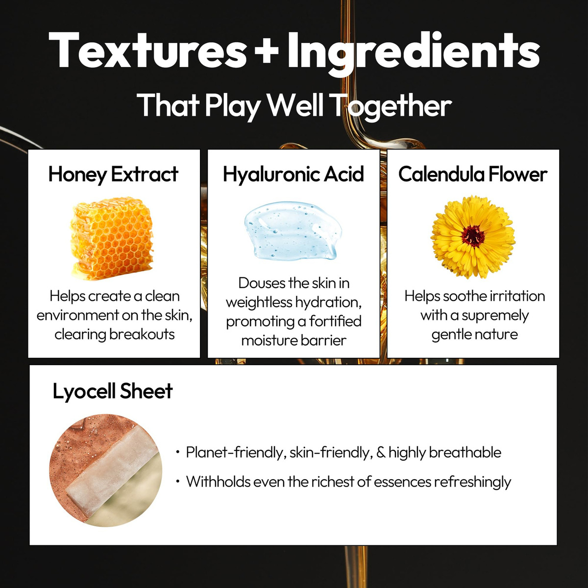 Máscara de lençol diária LAPCOS (mel, pacote com 5) — Uma máscara nutritiva de liocel alimentada por extrato de mel, ácido hialurônico e calêndula. Deixa sua pele com uma sensação… aveludada e macia, como a textura rica do mel. O mel faz milagres multitarefa para sua pele, fornecendo hidratação e nutrição que amam a pele. Esta máscara nutritiva ajuda a restaurar a elasticidade e a conferir um lindo brilho residual, graças à dose refrescante de hidratação dos ácidos hialurônicos. O mel também é um ingrediente antibacteriano e é conhecido por suas propriedades curativas para peles irritadas e sensíveis, bem como eczema, psoríase e doenças semelhantes. Benefícios: + Elimina as erupções cutâneas e melhora a acne + Como umectante natural, absorve e retém a umidade. Enraizados nas tradições e tecnologias coreanas, inspirados no estilo de vida ensolarado, arejado e infinitamente criativo de Los Angeles, selecionamos a combinação perfeita entre formulações e práticas testadas e comprovadas que resistem ao teste do tempo. Estamos aqui para compartilhar produtos básicos para a pele que se adequam ao seu estilo de vida com o mesmo nível de facilidade de abrir uma kombuchá gelada. – FIRME E NUTRA A PELE – Esta máscara de lençol de liocel aproveita os poderes naturais do mel. A máscara ajuda a restaurar a elasticidade da pele, deixando sua pele macia e aveludada – MEL HIDRATANTE E EXTRATO DE FLORES – Extrato de mel para acalmar a pele estressada com suas propriedades nutritivas. A flor amarela tonifica e endurece com altos níveis de carotenóides, compostos semelhantes à vitamina A – RICOS EM ANTIOXIDANTES – O mel fresco é uma dose inegável de doçura. Cheio de antioxidantes, ele também possui uma infinidade de propriedades benéficas para a pele – K-BEAUTY ESSENTIAL – Uma marca favorita de culto, criada com ingredientes da mais alta qualidade e dedicação intransigente à inovação em beleza e cuidados com a pele. – COMO USAR – Depois de limpar e tonificar, abra uma única folha e espalhe suavemente pelo rosto, evitando as áreas dos olhos e da boca. Deixe agir por 10 a 20 minutos e remova a máscara, batendo suavemente no soro restante até que seja totalmente absorvido