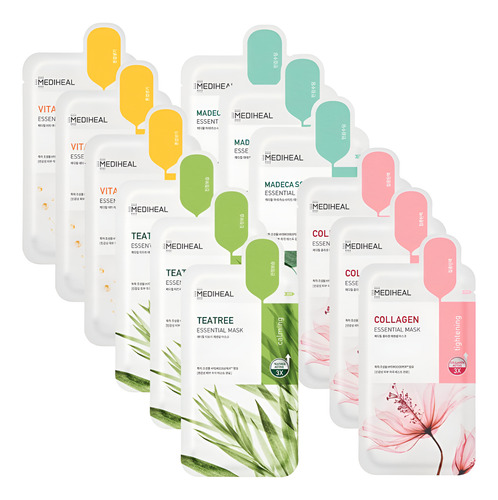 As melhores máscaras essenciais do Mediheal atualizadas. Foram adicionados 3 vezes ativos complexos, formas aprimoradas de máscaras de lençóis e lençóis que não agridem a pele. O exclusivo complexo patenteado Hydrodeeper da Mediheal melhora a hidratação e a hidratação, uma combinação de aminoácidos e minerais para adultos e bebês para melhorar a hidratação da pele.