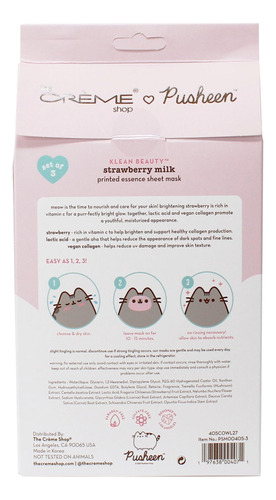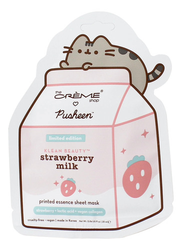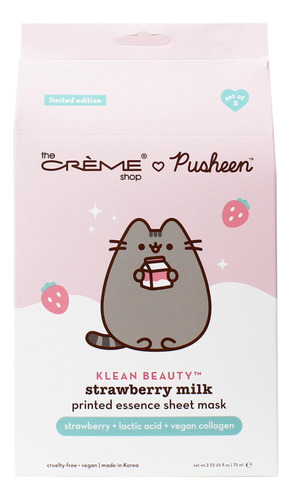 MÁSCARA DE LENÇOL DE ESSÊNCIA IMPRESSA COM LEITE DE MORANGO PUSHEEN KLEAN BEAUTY