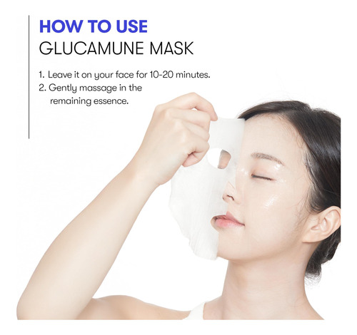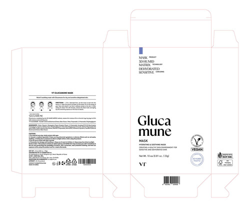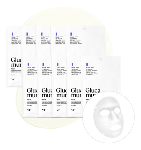 Máscara de glucamuna da VT COSMETICS, máscara de lençol vegana hidratante para rosto, hipoalergênica, sem perfume, para pele seca e sensível, beta-glucana, glucosamina, Glass Skin Glow, cuidados com a pele coreana (10 unidades)
