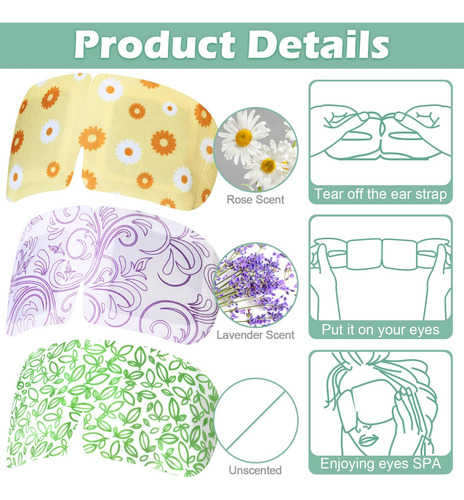 – Fácil para transportar: esta compressa de aquecedor de olhos é portátil, descartável e embalada automaticamente, sem ocupar muito espaço, quando você quiser faça um spa oftalmológico, basta levar algumas peças em sua bolsa, mala e mochila; é adequada para viagens, dias de trabalho árduo, dormir à noite e cochilar.