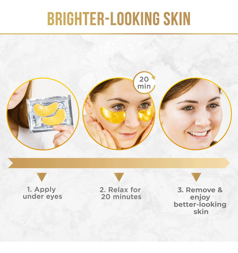 – 20 pares para resultados duradouros: compre 20 pares de nossa máscara de olhos Golden Glow para um tratamento completo e duradouro.