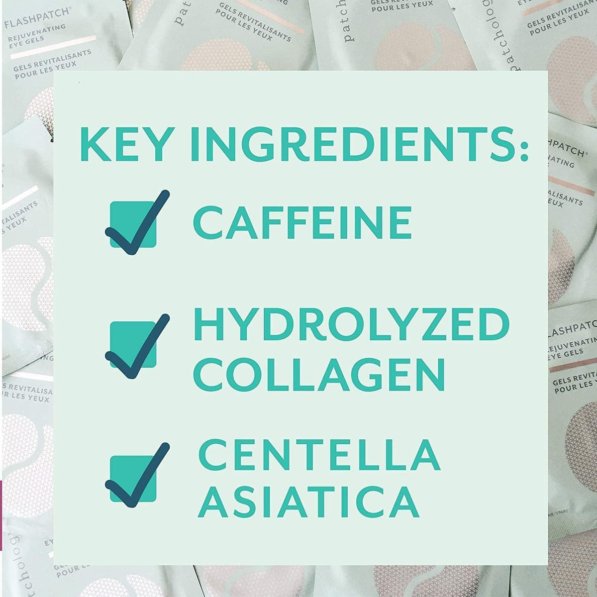 Géis rejuvenescedores sob os olhos Patchology — Máscara hidratante para os olhos com cafeína, colágeno hidrolisado e centela asiática — Tampões embaixo dos olhos para olheiras — Minimize o inchaço e redutor de rugas — 30 pares — Refrescantes, suavizantes e refrescantes: faça deles uma parte diária de seu regime regular de cuidados com a pele antes da maquiagem ou use-os sempre que precisar acalmar olhos cansados e sobrecarregados para parecer que está suas oito horas completas todos os dias em apenas cinco minutos! – CAFEÍNA, COLÁGENO HIDROLISADO E CHÁ VERDE: mais eficaz do que cremes ou séruns tópicos, o sistema de umidade HydraSurge 5, proprietário da Patchology, acelera a entrega de ingredientes essenciais: cafeína, colágeno hidrolisado e chá verde – BEAUTY AT THE SPEED OF YOU: Patchology foi formada com base na ideia de que a entrega verdadeiramente eficaz dos melhores ingredientes do seu jeito é um divisor de águas – 30 pares de GÉIS PARA OS OLHOS: os hidrogéis biodegradáveis permanecem no lugar certo para que você obtenha esses ingredientes onde mais precisa. A QUALQUER MOMENTO, LEMBRE-SE: coloque um par de géis na parte inferior dos olhos limpa e seca por cinco minutos (ou mais, se desejar). Descarte após o uso e massageie o soro restante na pele