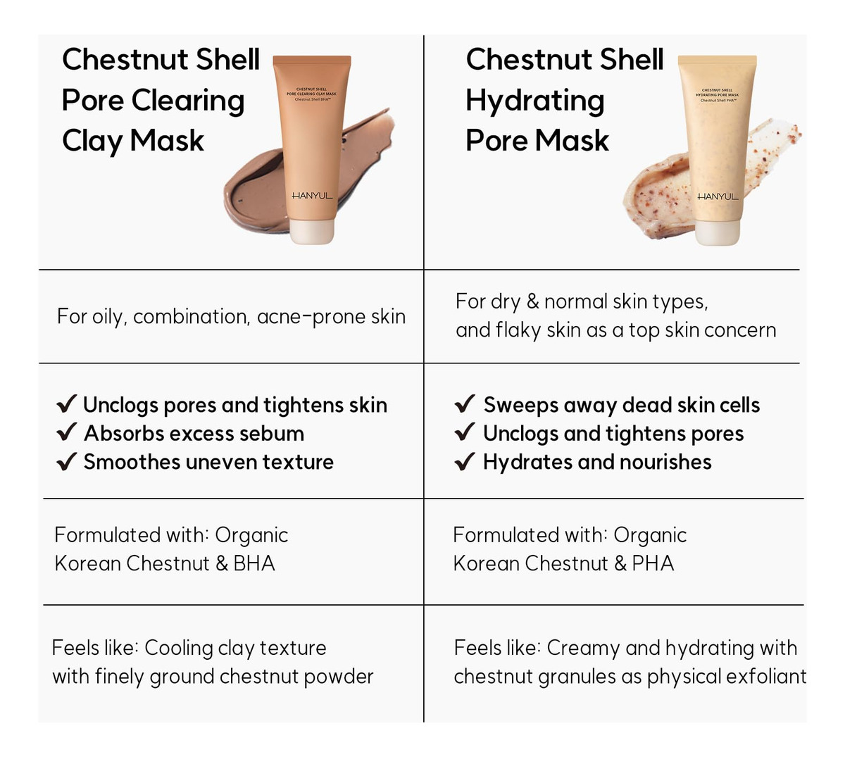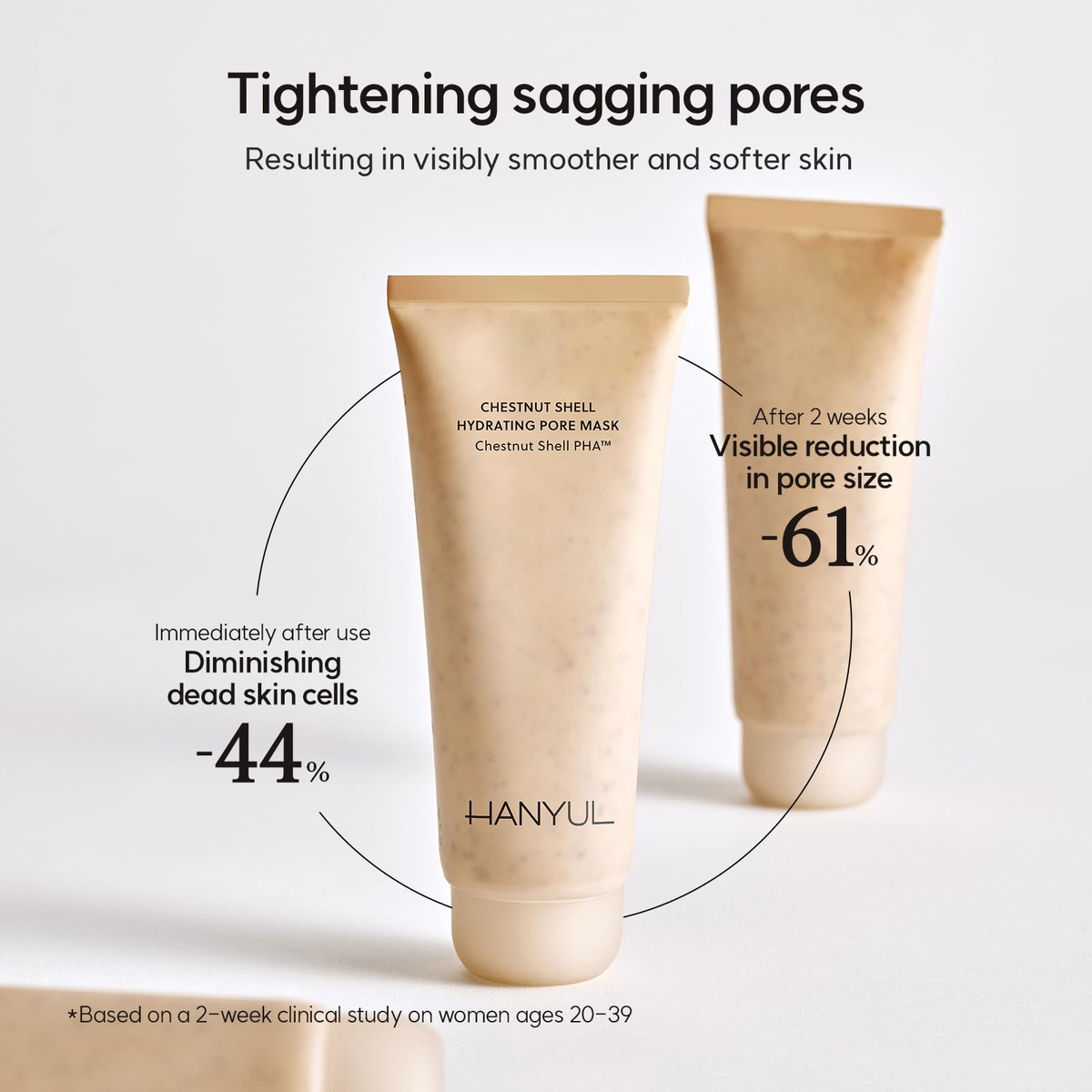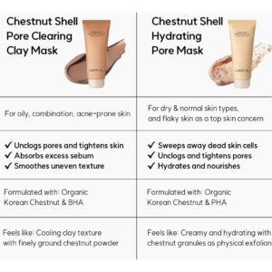 Revele a beleza sem poros com a máscara hidratante de poros HANYUL Chestnut Shell. Uma mistura sinérgica de cascas de castanhas orgânicas e a ciência avançada da K-beauty esfolia, suaviza e firma suavemente a pele. Experimente a sabedoria milenar das anedotas fitoterápicas coreanas para poros fechados e pele mais lisa e rejuvenescida. – SOLUÇÃO VEGANA CERTIFICADA PARA CUIDAR DOS POROS: formulada com a exclusiva casca de castanha PHA da principal região de castanheiros da Coreia. Esta máscara foi habilmente criada para fornecer soluções específicas para uma redução dramática de 61% no tamanho dos poros e uma redução de 44% na pele morta, conforme testemunhado em um rigoroso Estudo clínico de 3 semanas. – CHESTNUT PHA, UMA TECNOLOGIA INTENSIVA DE CUIDADOS COM A PELE PARA POROS SECOS: com PHA e casca de castanha misturados em uma fórmula de textura macia, é suavemente envolve a pele e remove a pele morta sem causar irritação, deixando a pele macia e limpa. – 5 TIPOS DE ÁCIDO HIALURÔNICO E AHA PARA PELE SECA: 5 tipos de ácido hialurônico e AHA hidratam instantaneamente a pele seca que não absorveria nada, criando uma base de pele macia e úmida. – CIÊNCIA DO MICROBIOMA DE HANYUL: Na sabedoria da cultura alimentar fermentada coreana, o arnês Hanyul a potência dos probióticos para criar um equilíbrio saudável da pele e ajudar a sustentar o microbioma natural da pele. – COMO USAR: Aplique a quantidade desejada em todo o rosto ou em áreas específicas de preocupação. Deixe agir por 5 a 10 minutos ou até secar. Enxágue suavemente massageando em movimentos circulares com água morna. Use de uma a duas vezes por semana.