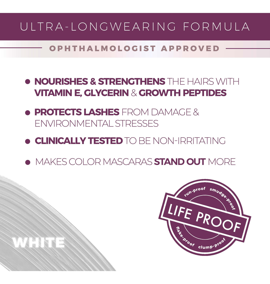 Blinc White Lash Primer, rímel condicionador de cílios para aumentar os cílios com vitamina E e peptídeos promotores de crescimento, primer de rímel branco volumizador e alongador, 6,8 ml/0,23 fl. Oz — Cria uma camada de base ao redor dos cílios para aumentar o volume e o comprimento que amplifica o efeito do rímel — A fórmula enriquecida com vitaminas condiciona os cílios — Fortalece os cílios e aumenta a resistência à quebra — Não é necessário removedor de maquiagem — Protege os cílios contra o estresse ambiental