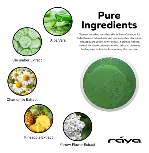 PRODUTO: Máscara de sorvete de pepino Raya (608) | Máscara facial em gel calmante e refrescante para todas as peles | ajuda a reduzir a vermelhidão e a inflamação | Ótimo tratamento calmante pós-sol