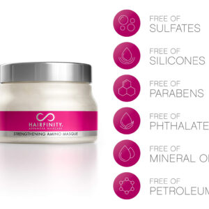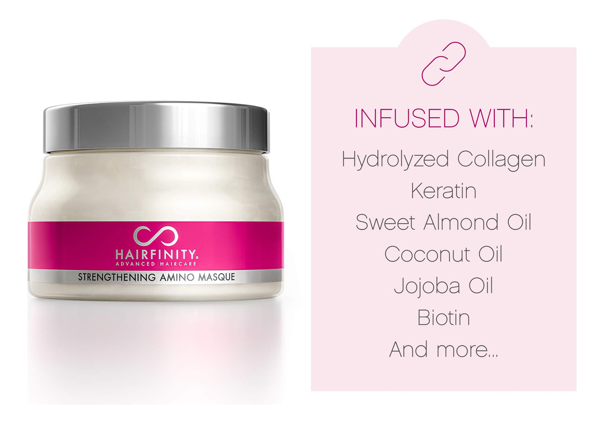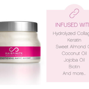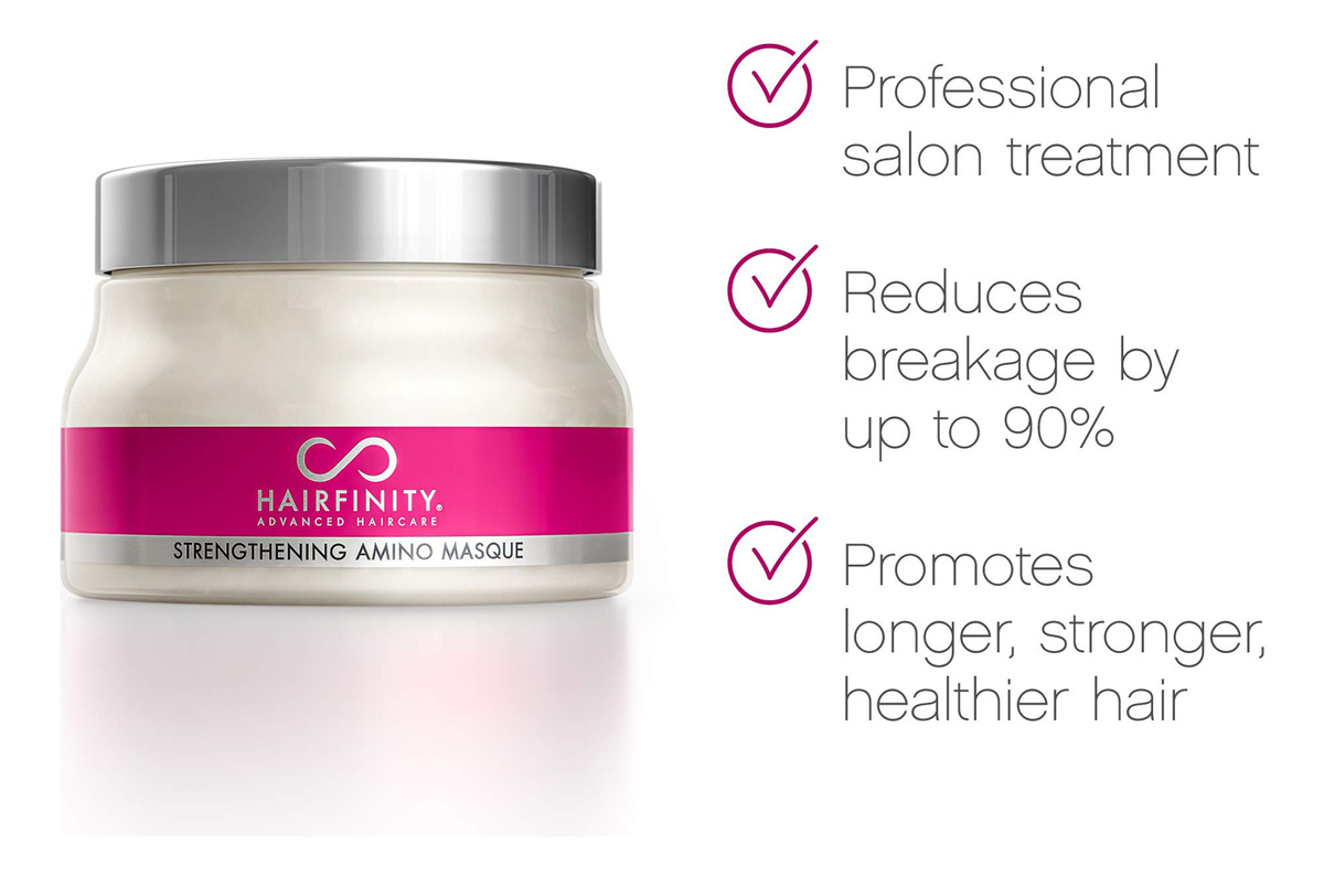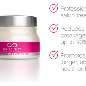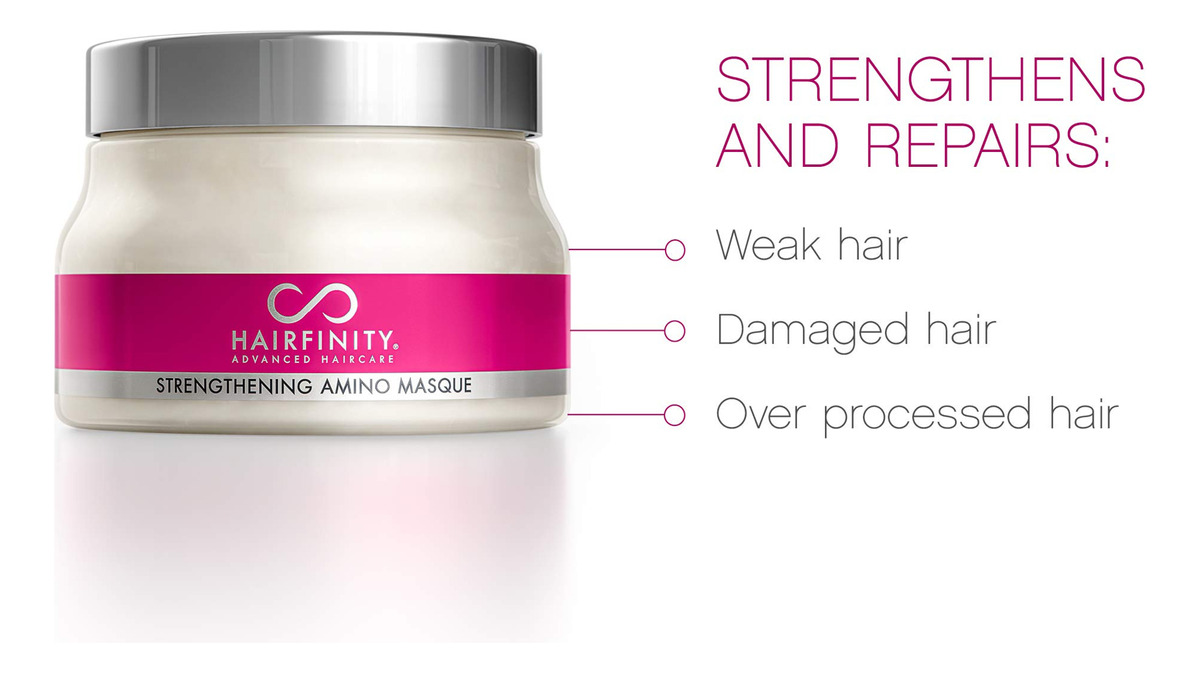 Máscara de tratamento com aminoácidos para fortalecer o cabelo Hairfinity — Máscara hidratante e creme condicionador profundo para cabelos secos e danificados com colágeno hidrolisado, queratina, proteína vegetal para o crescimento, 8 onças — Reparador natural do cabelo — Perfeita para cabelos cacheados ou lisos danificados, tratados com cores. Ajuda a reparar e restaurar cabelos fracos, superprocessados e danificados pelo calor para estimular o crescimento. – Contém mais de 94% de ingredientes naturais – Contém óleo de coco, óleo de amêndoa doce, óleo de jojoba e muito mais para hidratação máxima. Hidratante para cabelo e couro cabeludo. – Sérum sem sulfato – Não contém silicones, parabenos, ftalatos, óleo mineral ou petróleo. Para todos os tipos de cabelo, incluindo cabelos coloridos ou tratados com queratina, permanentes, naturais e encaracolados. Seguro e eficaz para homens e mulheres. – Tratamento profissional de salão de beleza – Tratamento hidratante e condicionador ideal para reparação total do cabelo. Comprovado que reduz a quebra do cabelo em até 90%. Os aminoácidos fortalecem cada mecha, preenchendo as lacunas para um cabelo mais forte, mais liso e com menos crespo. – Use com vitaminas e produtos de crescimento capilar para restaurar danos adicionais.