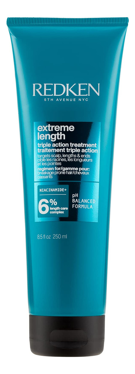 Máscara de tratamento Redken Extreme Length | Máscara de tratamento para enxágue com biotina e óleo de rícino | Para o crescimento do cabelo | 8,5 fl oz – Máscara de tratamento de 5 minutos: um tratamento capilar de ação rápida formulado com biotina, niacinamida e óleo de rícino para ajudar a nutrir e refrescar o couro cabeludo e promover pontas fortalecidas e reduzir a quebra. – Tratamento de ação tripla: ajuda a tratar quebras no couro cabeludo, comprimentos e pontas de cabelo para ajudar você a crescer um cabelo mais longo e mais forte – Cabelo com aparência e sensação saudáveis: após o uso, o cabelo fica brilhante com pontas duplas visivelmente reduzidas e frizz e sensação controlados suave e macia ao toque — Para todos os tipos e texturas de cabelo: esta máscara de tratamento é ideal para todos os tipos e texturas de cabelo, até mesmo cabelos tingidos — Cabelos mais longos e fortes: quando usada como um sistema com shampoo de comprimento extremo, você notará cabelos duas vezes mais fortes em um único uso. (Sistema de shampoo e máscara de comprimento extremo versus shampoo não condicionador)