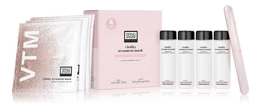 Máscara de tratamento Erno Laszlo Vitality | Plump & Clarify | Mistura de pó mineral com loção sérum | Pacote de 4 máscaras (1,25 fl oz cada) — Máscara de tratamento de vitalidade: esta máscara facial que mistura para ativar preenche, ilumina, suaviza e melhora a clareza da pele. – A famosa máscara rosa: esta máscara de resgate de spa caseira libera o brilho da pele em um único uso e é eficaz em todos os tipos de pele, incluindo pele madura, pele seca, mista e oleosa. – Como funciona: Combine o ativador líquido com o pó mineral e misture vigorosamente. Espalhe uma camada grossa sobre o rosto. Deixe agir por 15 minutos. Retire a máscara da testa para baixo. – Ingredientes principais: Esta fórmula ativa contém um Complexo Mineral Triplo, com ingredientes provenientes do Mar Morto, e um ativador líquido enriquecido com provitamina B5. – Cuidados com a pele limpa, apoiados pela ciência: este produto é livre de ftalatos, sem parabenos, sem petroquímicos, sem óleo mineral, sem silicone e sem fragrâncias sintéticas. Estamos comprometidos com a ciência limpa.