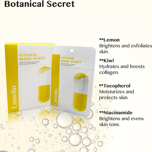 PRODUTO: Máscara de lençol de vitamina niacinamida da lamelina, 10 pacote, limão kiwi extrato tocoferol anti -envelhecimento hidratação feita na Coréia