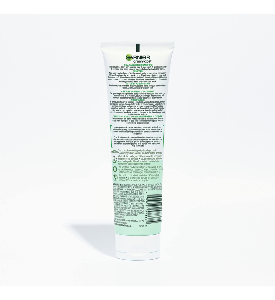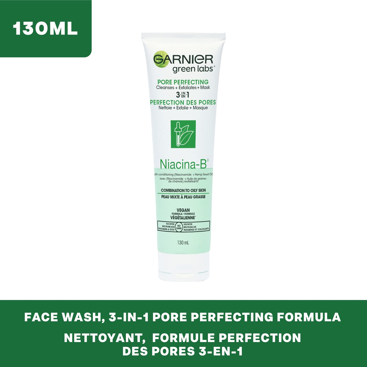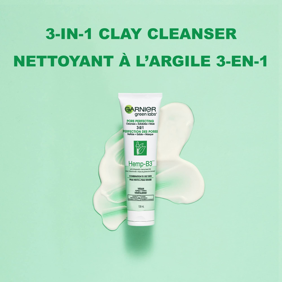 A máscara esfoliante Garnier SkinActive Green Labs Canna-B Pore Perfecting 3 em 1 com niacinamida e vitamina B3, óleo de semente de cannabis sativa para pele mista a oleosa, 4,4 fl oz (a embalagem pode variar), – Sabonete facial 3 em 1 com perfeição de poros, esfoliante + máscara facial Garnier Green Labs é um sabonete facial sem esfoliante, esfoliante suave e máscara facial Garnier Green Labs – Niacacina Vitamina B3 inamida e óleo de semente de cannabis sativa limpa profundamente, fornece controle de brilho e fecha os poros – Aprovado pela Cruelty Free International, fórmula vegana – Sem ingredientes de origem animal e sem sulfatos, microesferas, parabenos ou corantes — Adequado para todos os tipos e tons de pele, testado para alergias e dermatologicamente testado quanto à segurança e adequado para peles sensíveis — Combine com o creme sérum aperfeiçoador de poros sem fragrância Canna-B da Green Labs para pele menos oleosa e poros refinados