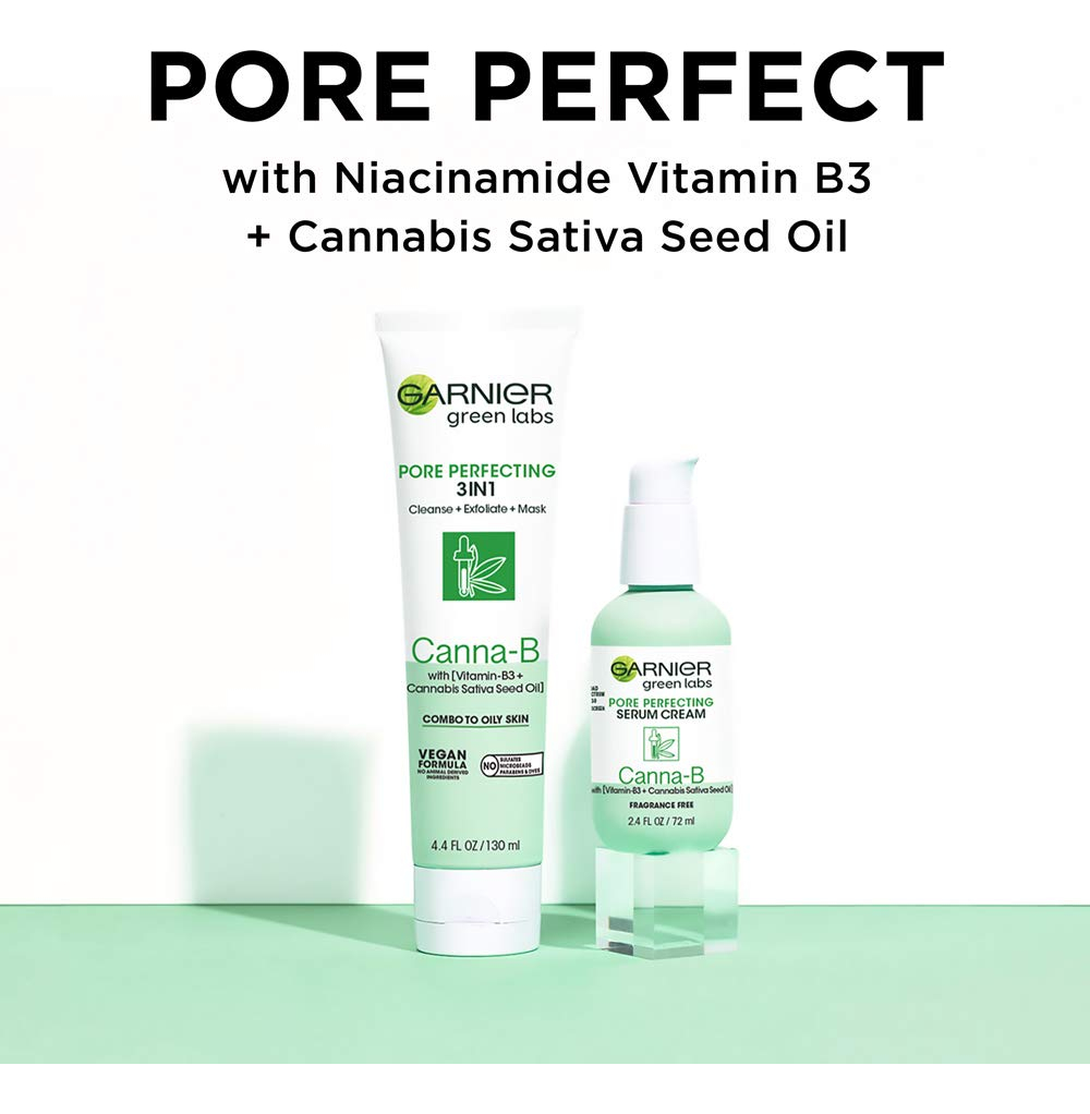 Garnier SkinActive Green Labs Canna-B Pore Perfecting 3-in-1 Face Wash Exfoliator Mask with Niacinamide Vitamin B3 Cannabis Sativa Seed Oil for Combination to Oily Skin 4. 4 Fl Oz (Packaging May Vary), |