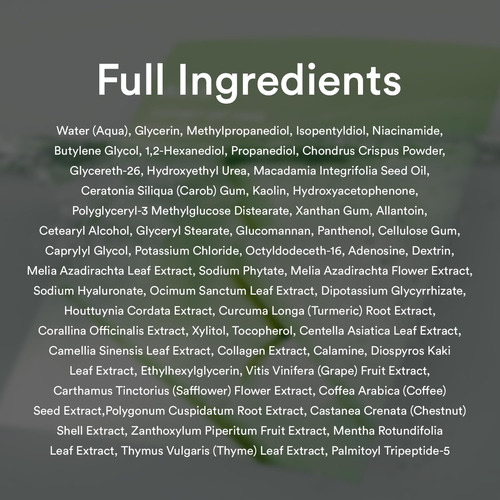 – COLÁGENO VEGANO: com uma infusão de 100.005 ppm de colágeno fermentado, tripeptídeo de palmitoílo-5 (que estimula a pele) e extrato de folha de coração, ajuda a pele a suavizar e acalmar do estresse externo ou irritação por raios UV