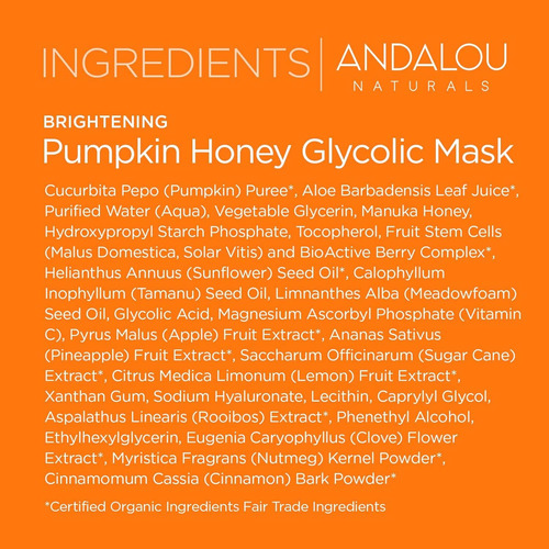 Máscara glicólica de mel de abóbora Andalou Naturals, máscara facial iluminadora e esfoliante com ácido glicólico e vitamina C, remove suavemente a sujeira e ilumina a pele, 1,7 fl oz – Máscara esfoliante de abóbora: nossa máscara glicólica de mel de abóbora ajuda a limpar suavemente a sujeira, impurezas e células secas para esfoliar a pele e deixar seu rosto suave, brilhante e uniforme – Iluminando com vitamina C: Andalou Naturals Os produtos para a pele da Als com vitamina C podem ajudar a combater os danos causados pelo sol e promover um tom de pele mais brilhante e uniforme em tipos de pele normais e mistas – Ingredientes de Natureza: apoiamos padrões superiores de ingredientes de origem e usamos apenas ingredientes orgânicos, não transgênicos, sem glúten, sustentáveis, de comércio justo, livres de crueldade e derivados da natureza – Ciência das células-tronco de frutas: todos os produtos da Andalou Natural, incluindo máscaras, cremes, soros, hidratantes, limpadores e tonificantes, usam a solução de defesa antioxidante da natureza para proteger e apoiar a saúde da pele e do cabelo – Andalou Naturals: Não transgênico continua sendo um valor fundamental da marca Andalou Naturals e continuamos a fornecer ingredientes não transgênicos superiores para nossos produtos