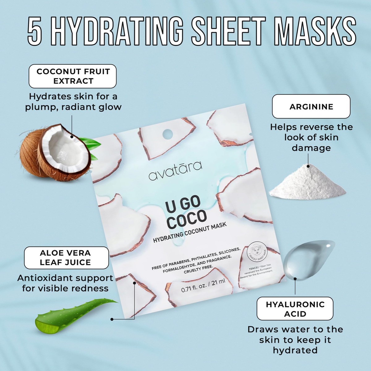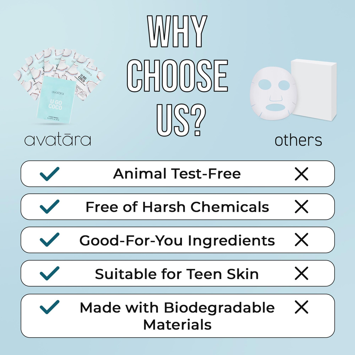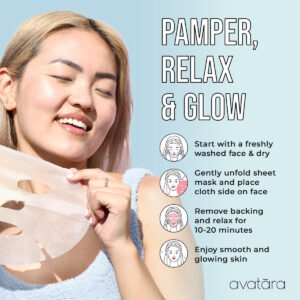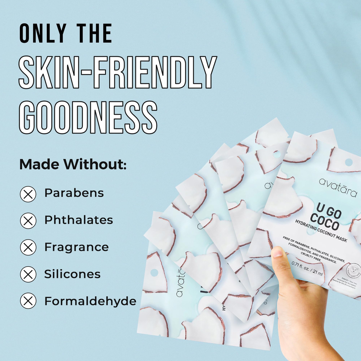 Eleve sua rotina de cuidados com a pele com a máscara facial U Go Coco Avatara. Descubra a hidratação instantânea e um brilho radiante, tudo em uma máscara fácil de usar. Experimente a beleza natural da sua pele, sem esforço. Fibras naturais Acreditamos em cuidar de sua pele da maneira mais suave possível. É por isso que nossa máscara facial hidratante é feita de fibra Tencel pura, um material derivado da madeira natural. Este material luxuoso é excepcionalmente macio e suavizante para a pele, proporcionando uma experiência verdadeiramente rejuvenescedora. Aproveitando os ingredientes que são bons para você No centro de nossa máscara facial hidratante está uma mistura cuidadosamente selecionada dos melhores ingredientes da natureza, cada um escolhido por sua capacidade única de transformar sua pele. Extrato de coco – hidrata rapidamente a pele, deixando-a com uma aparência carnuda e radiante. Arginina – ajuda a reverter o aparecimento de danos na pele e combate eficazmente as futuras preocupações relacionadas à pele. Ácido hialurônico – atrai a umidade, mantendo a pele hidratada, equilibrada e carnuda. Suco de folhas de aloe vera — Oferece hidratação essencial e suporte antioxidante para reduzir visivelmente a vermelhidão. Como usar Comece com um rosto recém-lavado. Desdobre suavemente a máscara de lençol e coloque o lado do pano no rosto. Ajuste sobre a boca, nariz e olhos. Remova o suporte e relaxe por 10 a 20 minutos. Ingredientes que importam Nossas máscaras faciais em lençol são mais do que apenas cuidados com a pele; elas são um reflexo do nosso compromisso com o seu bem-estar. Esses produtos de beleza para mulheres são livres de fragrâncias, veganos e livres de crueldade, garantindo que você possa se mimar com a consciência limpa. Libere o potencial da sua pele com a máscara facial Avataras Juicy U Go Coco! – Hidratação radiante – Com infusão de extrato de coco, nossa máscara facial hidrata rapidamente a pele, deixando-a com um brilho rechonchudo e radiante. Repleta de ácidos graxos e vitaminas, nossa máscara de lençol é sua arma secreta para obter uma pele suave, macia e hidratada. – Maravilha que mata a sede – Diga adeus à pele seca e com aparência cansada! Nossas máscaras faciais são como um refrescante gole de água para sua pele. Cada máscara facial em lençol combina hidratantes e vegetais ricos em eletrólitos para combater a desidratação e dar à pele a cobiçada aparência volumosa. – Revele uma pele macia – Da adoção nutritiva da centella asiática à vitamina B5, nossos lençóis de máscara facial são um tesouro rico em nutrientes. Essas máscaras faciais hidratantes não apenas reduzem a vermelhidão e suavizam a aparência dos poros; elas nutrem profundamente a pele, deixando você com uma aparência jovem e revigorada. – Beleza atemporal, sem esforço – Diga adeus às preocupações com os danos à pele e com o passar do tempo. Com arginina, nossas máscaras de lençol para rosto não apenas ajudam a reverter os efeitos visíveis dos danos à pele, mas também servem como uma barreira contra futuras preocupações com a pele. – Luxo natural – Feita de fibra macia de Tencel, nossa máscara facial para cuidados com a pele mima suavemente, proporcionando uma experiência rejuvenescedora que se alinha perfeitamente aos seus valores de beleza limpa. Além disso, esta máscara facial não contém parabenos, ftalatos, silicones, formaldeído ou fragrâncias.